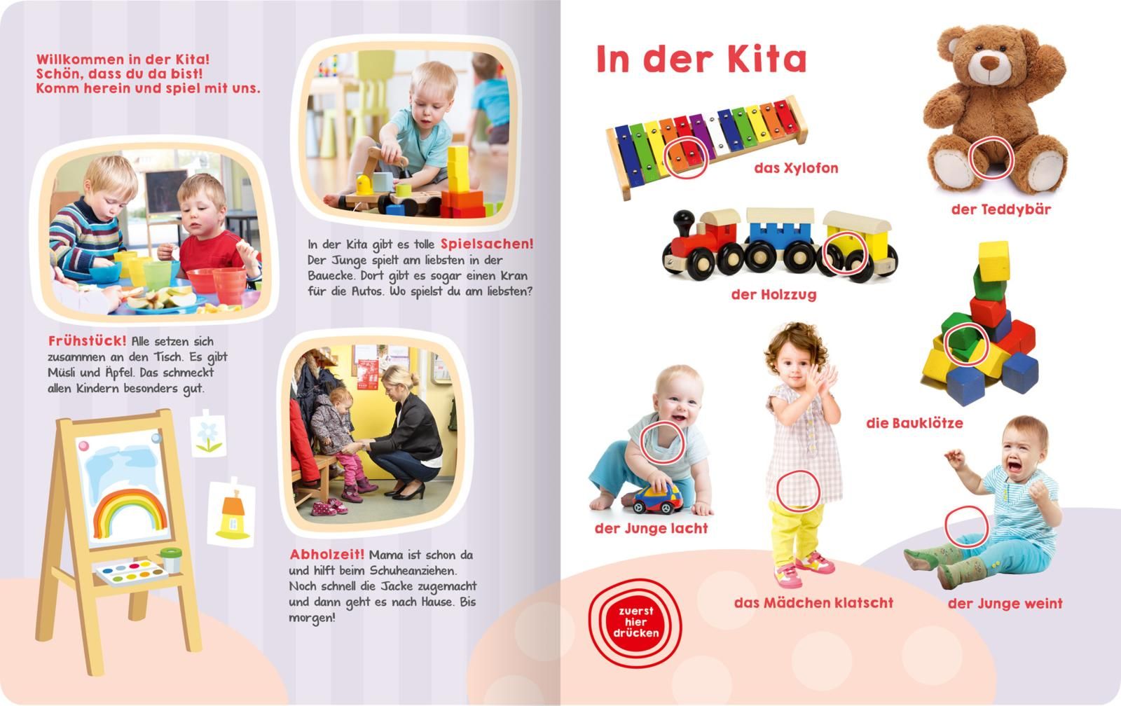 Auf 7 Themenseiten rund um den Alltag der Kleinsten gibt es viel zu entdecken - einfach Seite aktivieren und die Welt zum Klingen bringen. Hochwertige Fotografien, über 45 realistische Sounds und erstes Sachwissen bieten stundenlangen Entdeckerspaß für kleine Eroberer!