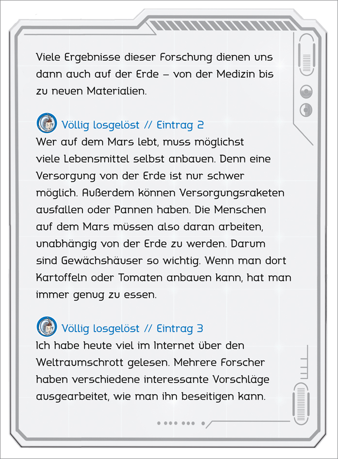 | Schlagworte | Abenteuer • Astronaut • Atmosphäre • Bodenstation • Einschulung • Erde • Erstleser • Fantasy • Freunde • Kometen • Lernen • Leseanfänger • Lesen • Lieblingsbuch • Major • Mond • Plutinchen • Raumanzug • Raumstation • Roboterkatze • Satellit • Schlafmodul • Schwerelosigkeit • Space_Camp_1 • Sputnik • Stella • Teleskop • Tom • Vorlesen • Weltraumschrott |