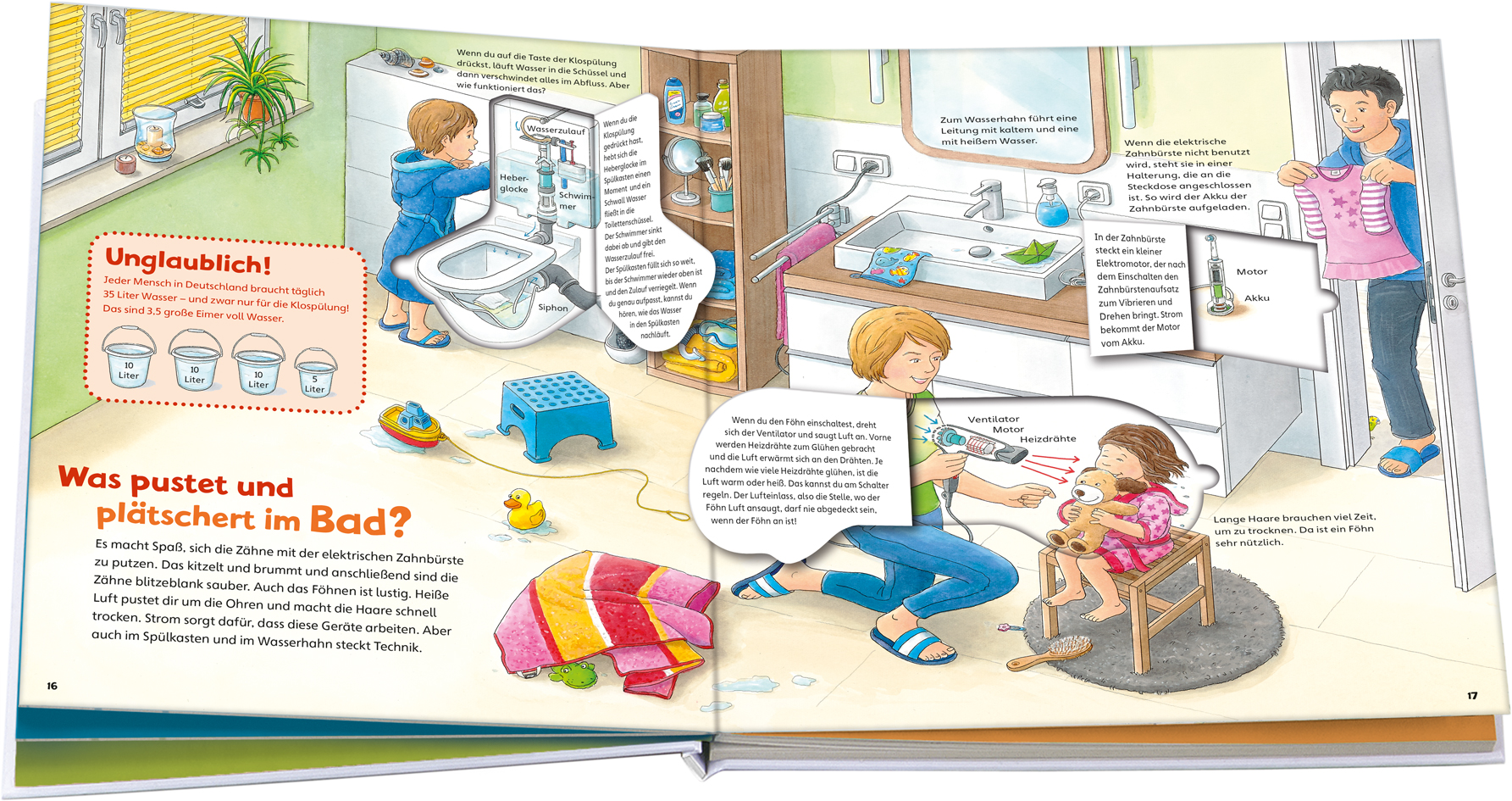 | Schlagworte | Bad • Computer • Fernseher • Handy • Haushalt • Heizung • Internet • Kaffeemaschine • Klospülung • Küche • Küchen-Helfer • Kühlschrank • Mikrowelle • Ofen • Rauchmelder • Router • Schnellkochtopf • Spielzeugauto • Strom • Technik • Telefon • Toilette • Waschmaschine • Wasser • Werkzeug • Wissen |