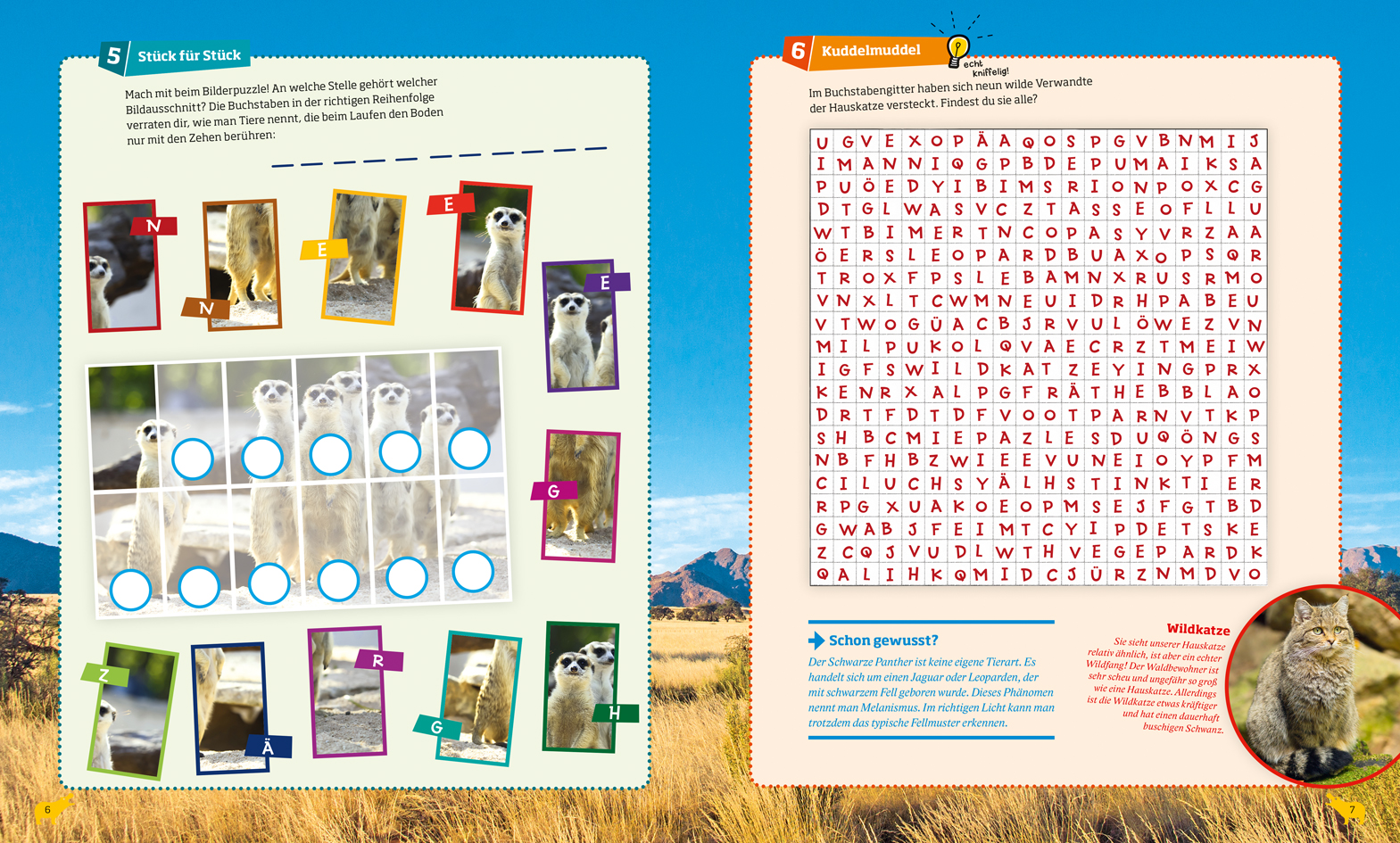 | Schlagworte | Insekten • Labyrinth • Logik-Rätsel • Natur • Quiz-Fragen • Ratekrimi • Säugetiere • Schmetterlinge • Spielen_und_Lernen • Sticker • Tiere • Vögel |