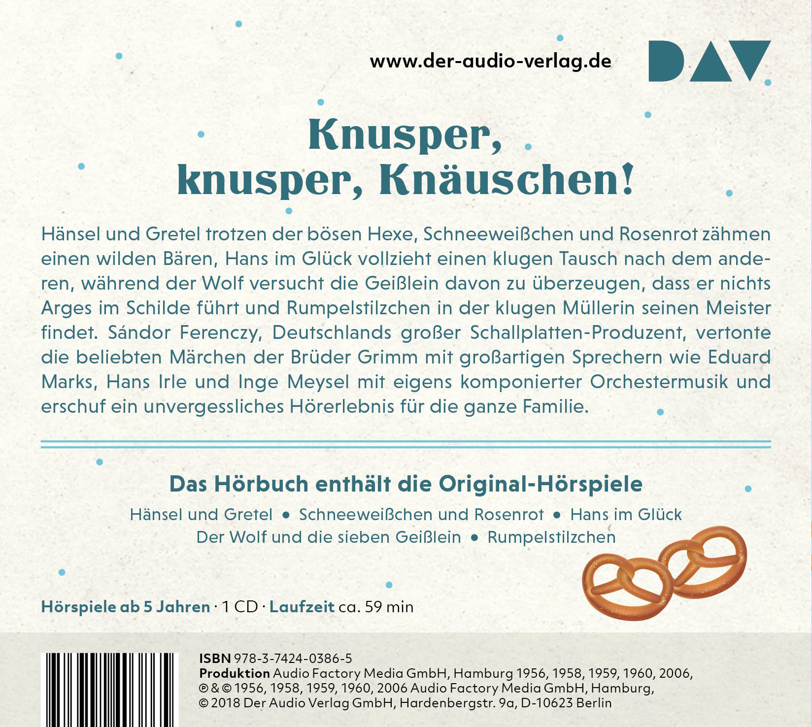 | Schlagworte | Der Wolf und die sieben Geißlein • Felicitas Kuhn • Hans im Glück • Hörbuch • Hörbücher • Hörspiel • Inge Meysel • Märchen • Rumpelstilzchen • Schneeweißchen und Rosenrot |