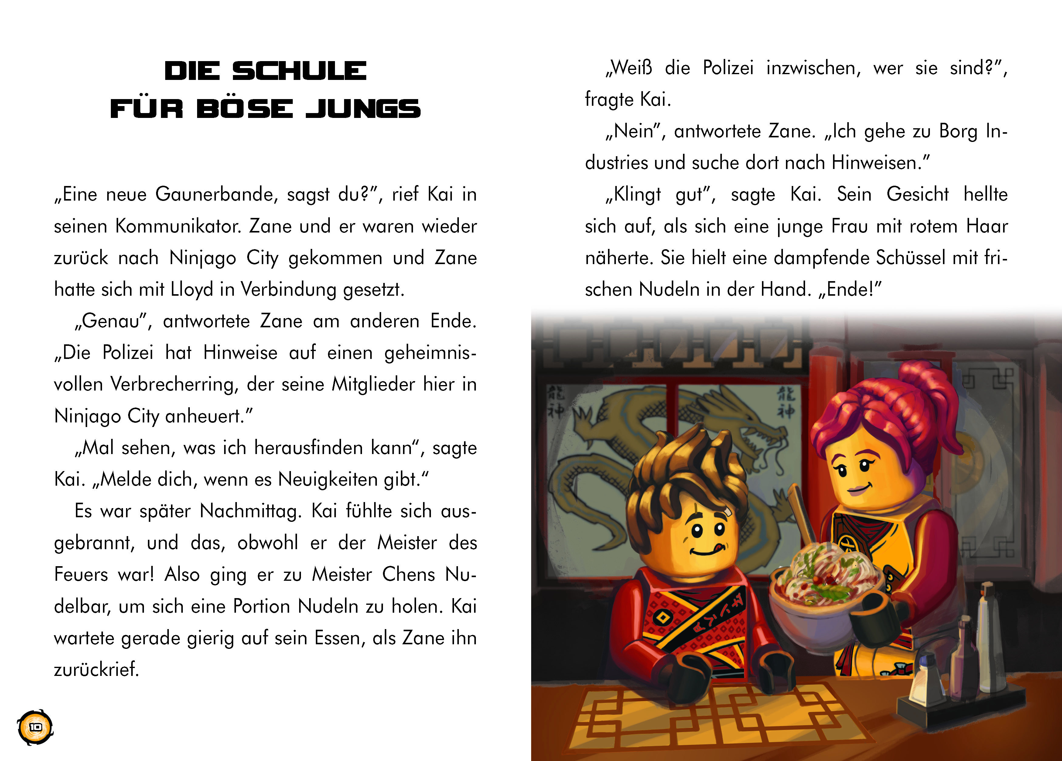 Rockige Gegner für die Ninja! Neuer Lesespaß für junge Ninja-FansDrei spannende Geschichten über Garmadons geheimnisvolle Motorrad-Gang: Die Bösewichte sind auf der Suche nach den mächtigen Oni-Masken und scheinen mit der "Schule der bösen Jungs" im großen Stil Anhänger anzuwerben. Kai und Skylor verfolgen ihren Anführer und erleben dabei eine Überraschung.Passend zu der neuesten TV-Staffel gibt es das fesselnde Lesebuch für Erstleser ab sechs Jahren. Mit den farbig illustrierten Doppelseiten erwacht Ninjago City auch abseits des Fernsehbildschirms zum Leben. Einführung und ein Glossar sorgen für einen leichten Einstieg in die Ninja-Welt.LEGO, the LEGO logo, the Brick and Knob configurations, the Minifigure and NINJAGO are trademarks of the LEGO Group. ©2018 The LEGO Group. Produced by AMEET Sp. z o.o. under license from the LEGO Group.