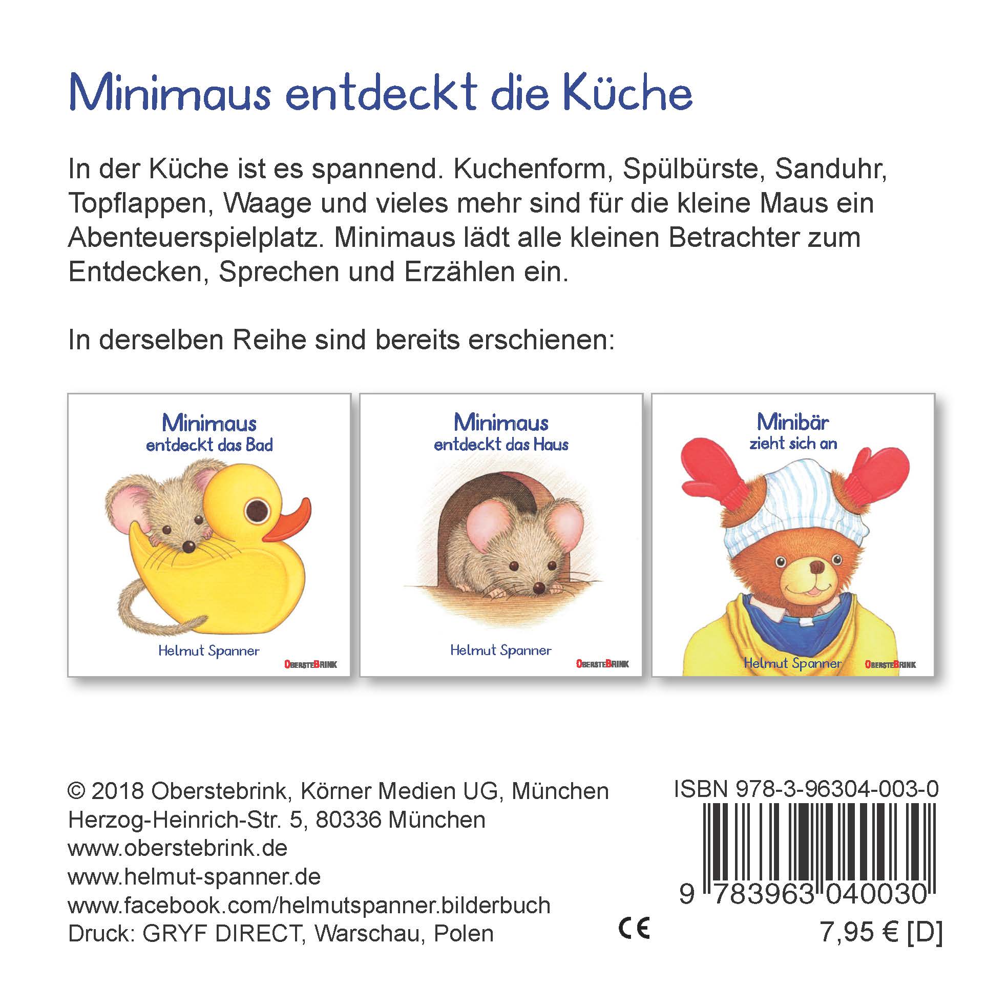 In der Küche ist es spannend. Kuchenform, Spülbürste, Sanduhr, Topflappen, Waage und vieles mehr sind für die kleine Maus ein Abenteuerspielplatz. Minimaus lädt alle kleinen Betrachter zum Entdecken, Sprechen und Erzählen ein.