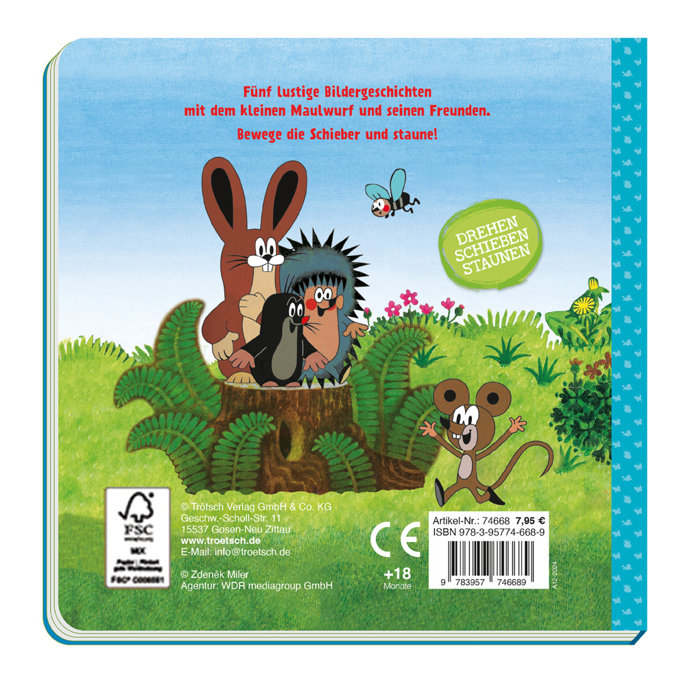 Ein fröhliches Maulwurf-Spielbuch voller überraschender Details, mit kleinen Schiebern zum Bewegen und Entdecken.