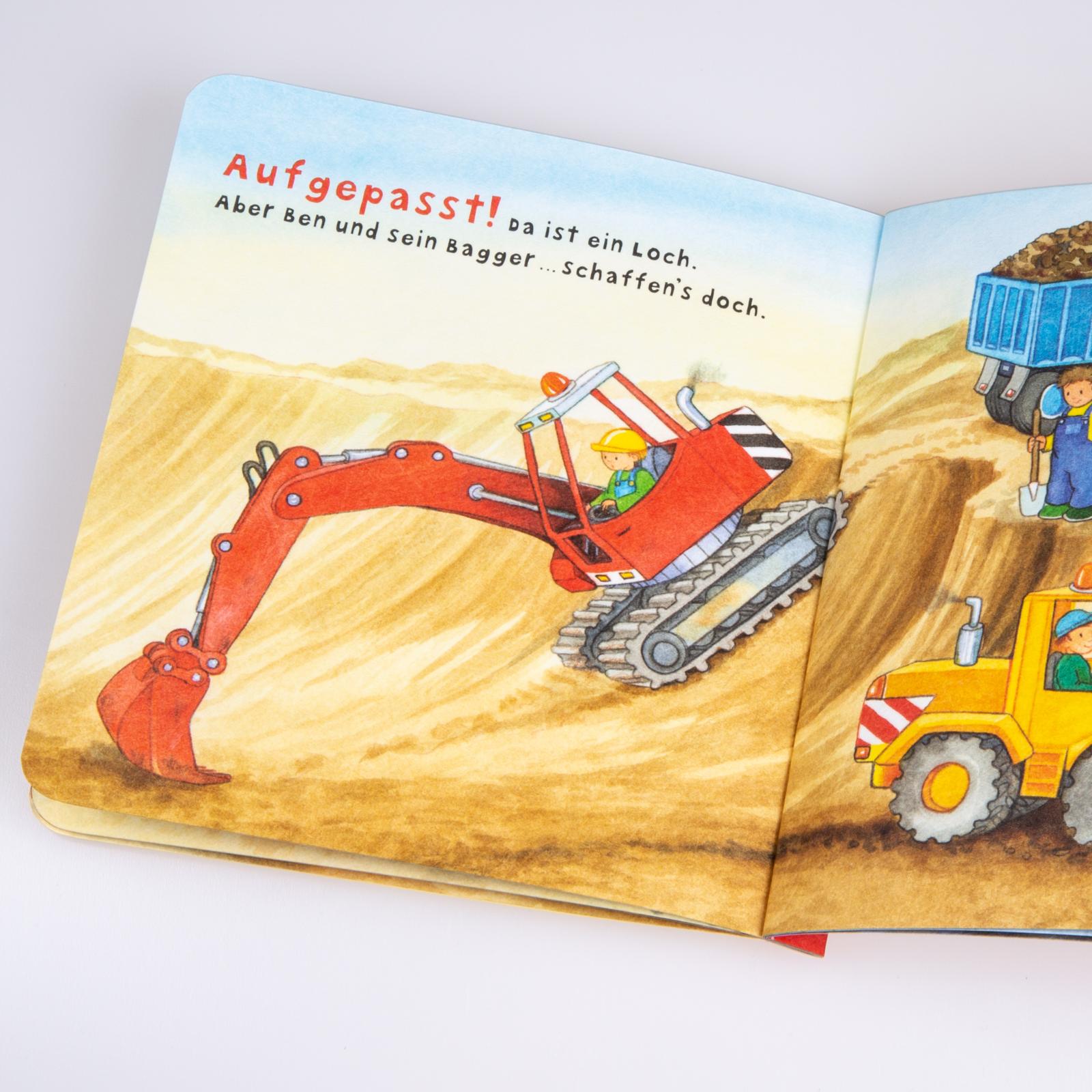 Baggerfahrer Ben und sein großer roter Bagger haben viel zu tun: Sie graben Löcher, heben Steine und beladen den Laster. Kommst du mit auf die Baustelle? Ein erstes Lieblingsbuch für kleine große Bagger-Fans.
