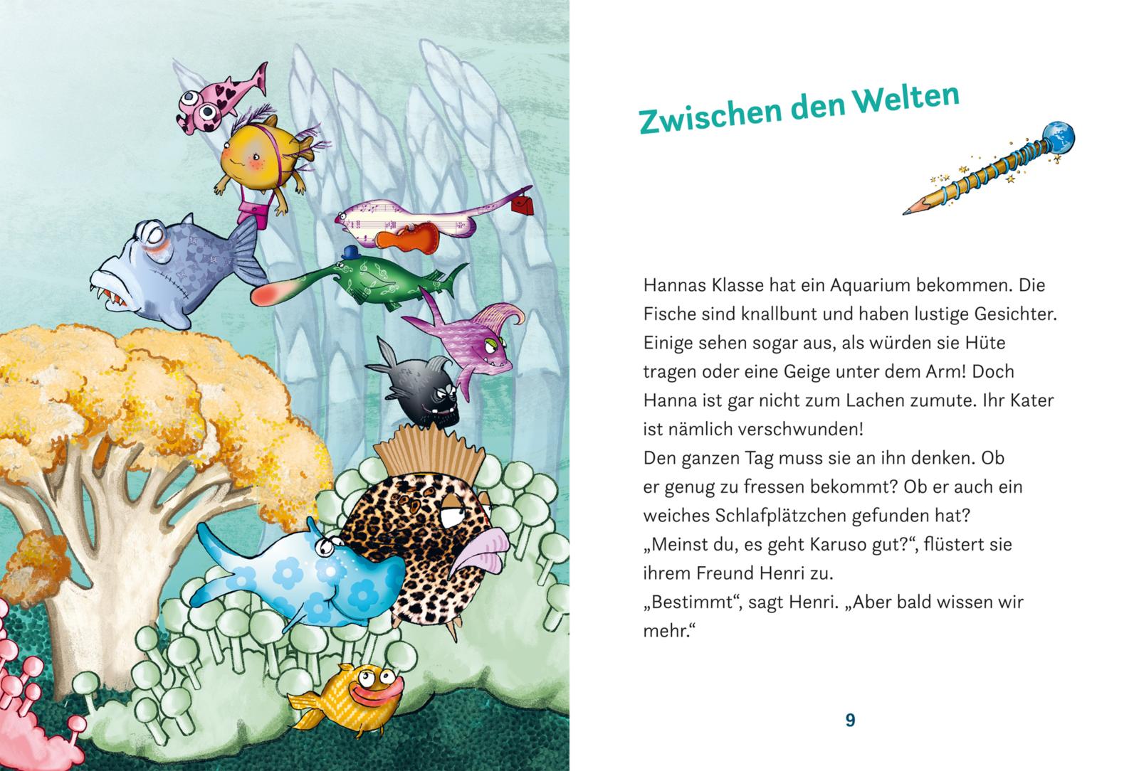 BAND 2: Unter dem Meer: Hanna und Henri sind tief unter Wasser gelandet. Plötzlich können sie schwimmen wie die Fische - und deren Sprache verstehen. Dabei hören sie, dass der Hai-Polizei ein dicker Fusselfisch ins Netz gegangen ist! Das kann nur Kater Karuso sein! Doch wie können sie ihn retten? ***