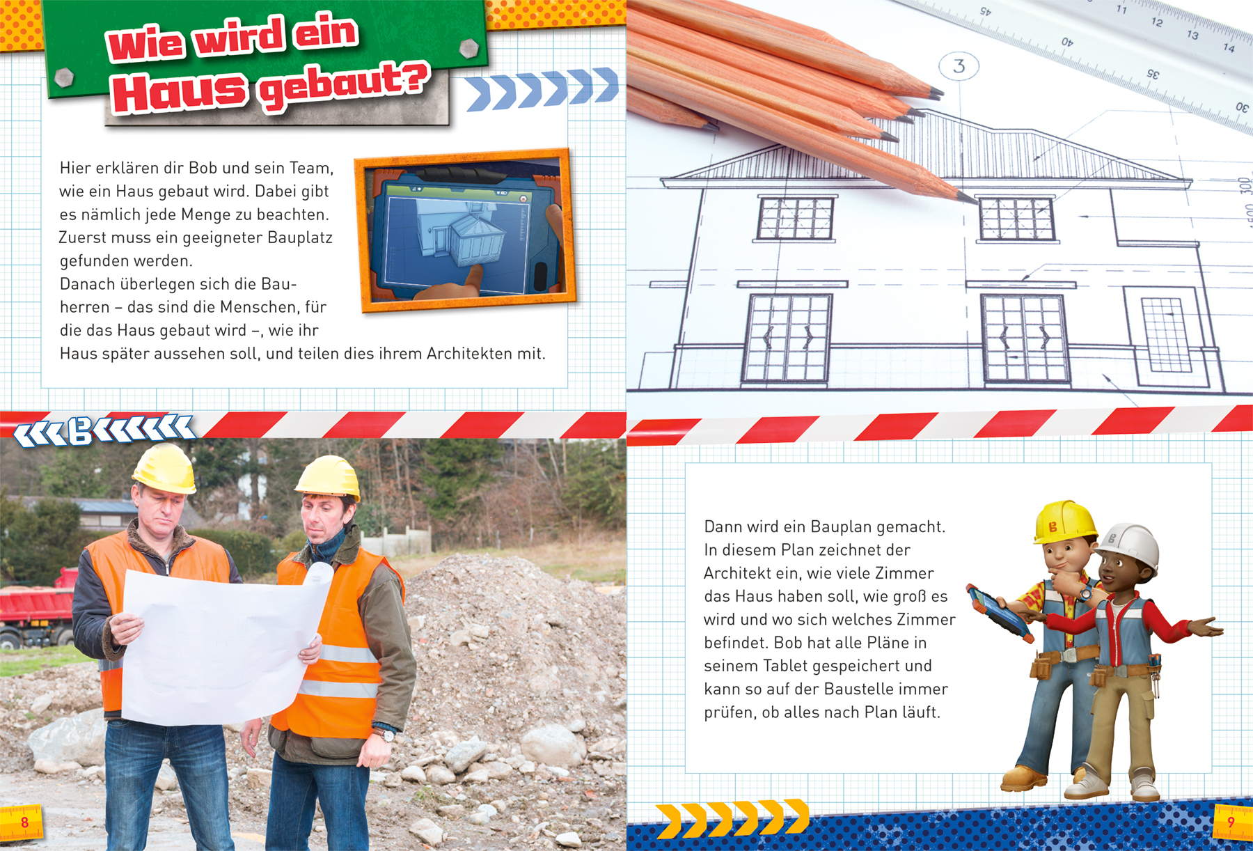 Wie wird ein Haus gebaut? Wie entsteht eine Straße oder eine Brücke? In diesem großen Baustellenbuch erklären Bob und sein Team kindgerecht anhand echter Baustellenfotos, wie Bauarbeiter bei ihrer Arbeit vorgehen. Außerdem erfahren kleine Baumeister alles Wissenswerte rund um die wichtigsten Baumaschinen, Bauarbeiterberufe, die Arbeit auf der Baustelle und vieles mehr!