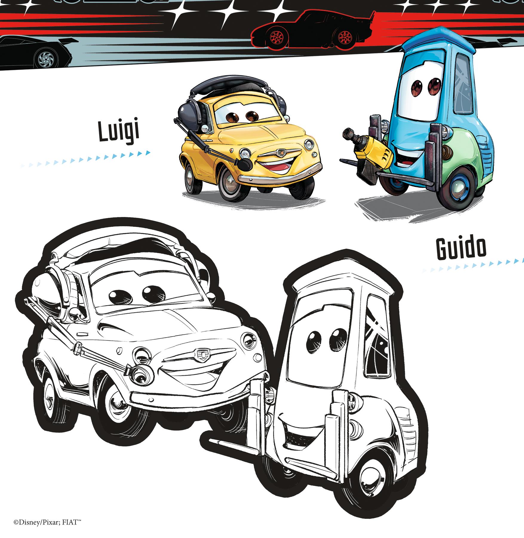 Hier können schon kleine Cars-Fans ihre Lieblingsautos gut ausmalen. Dicke Glitzerlinien helfen dabei, nicht über den Rand zu malen, und sehen richtig cool aus.So macht Ausmalen Spaß!
