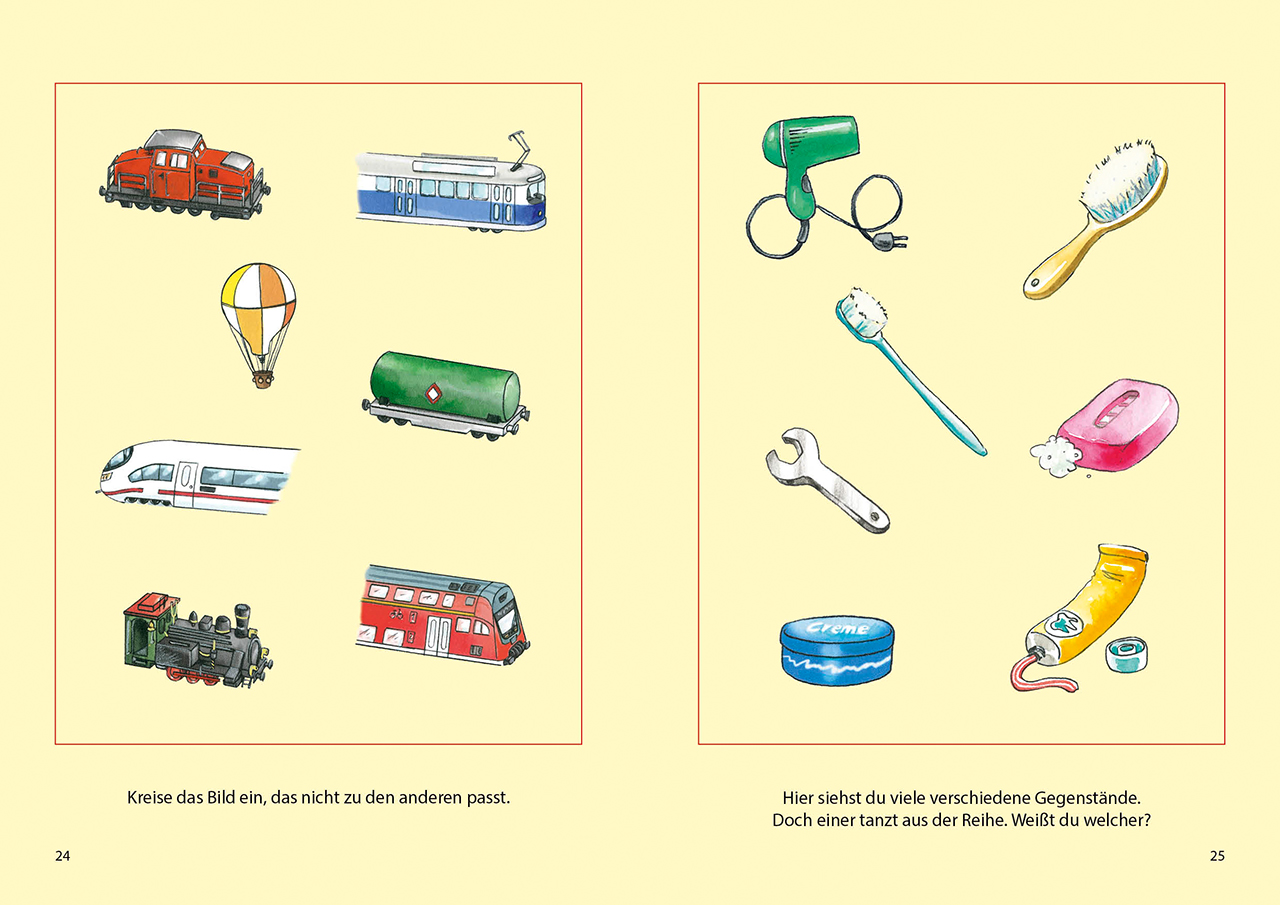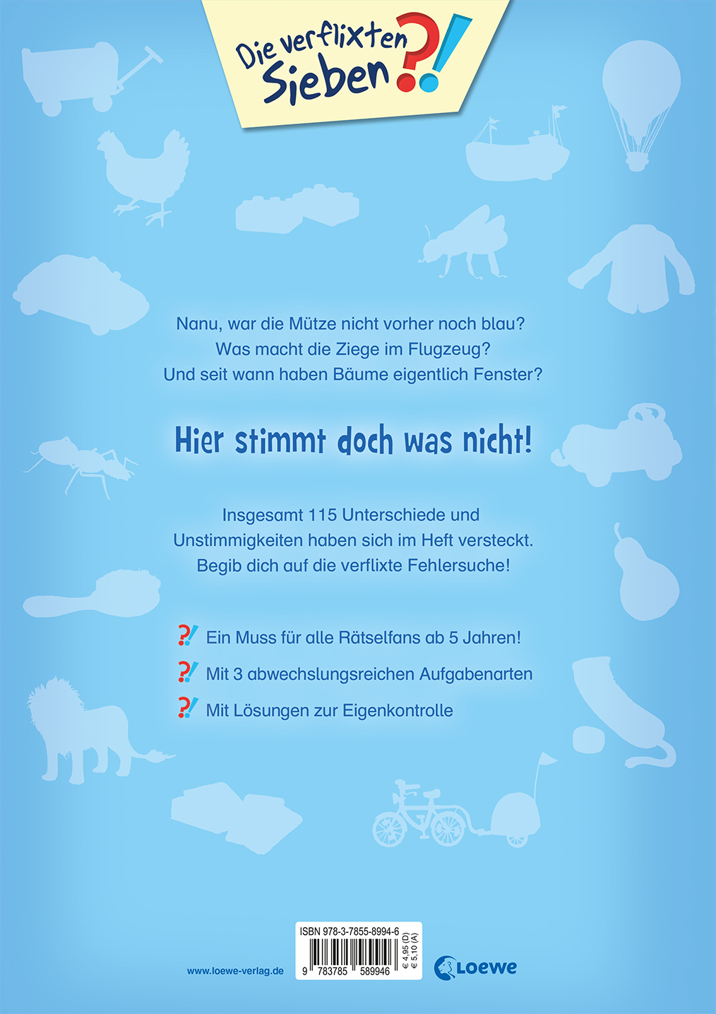 Nanu, war die Mütze nicht vorher noch blau? Was macht die Ziege im Flugzeug? Und seit wann haben Bäume eigentlich Fenster? Hier stimmt doch was nicht!