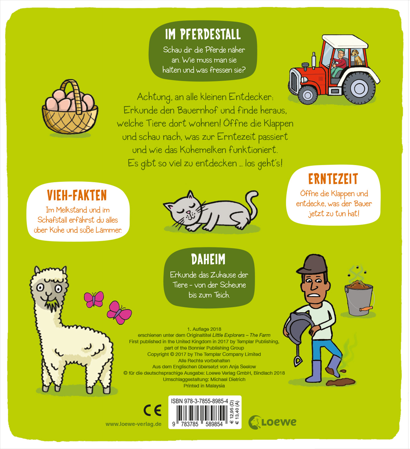 Achtung, an alle kleinen Entdecker: Erkunde den Bauernhof und finde heraus, welche Tiere dort wohnen! Öffne die Klappen und schau nach, was zur Erntezeit passiert und wie das Kühe melken funktioniert.