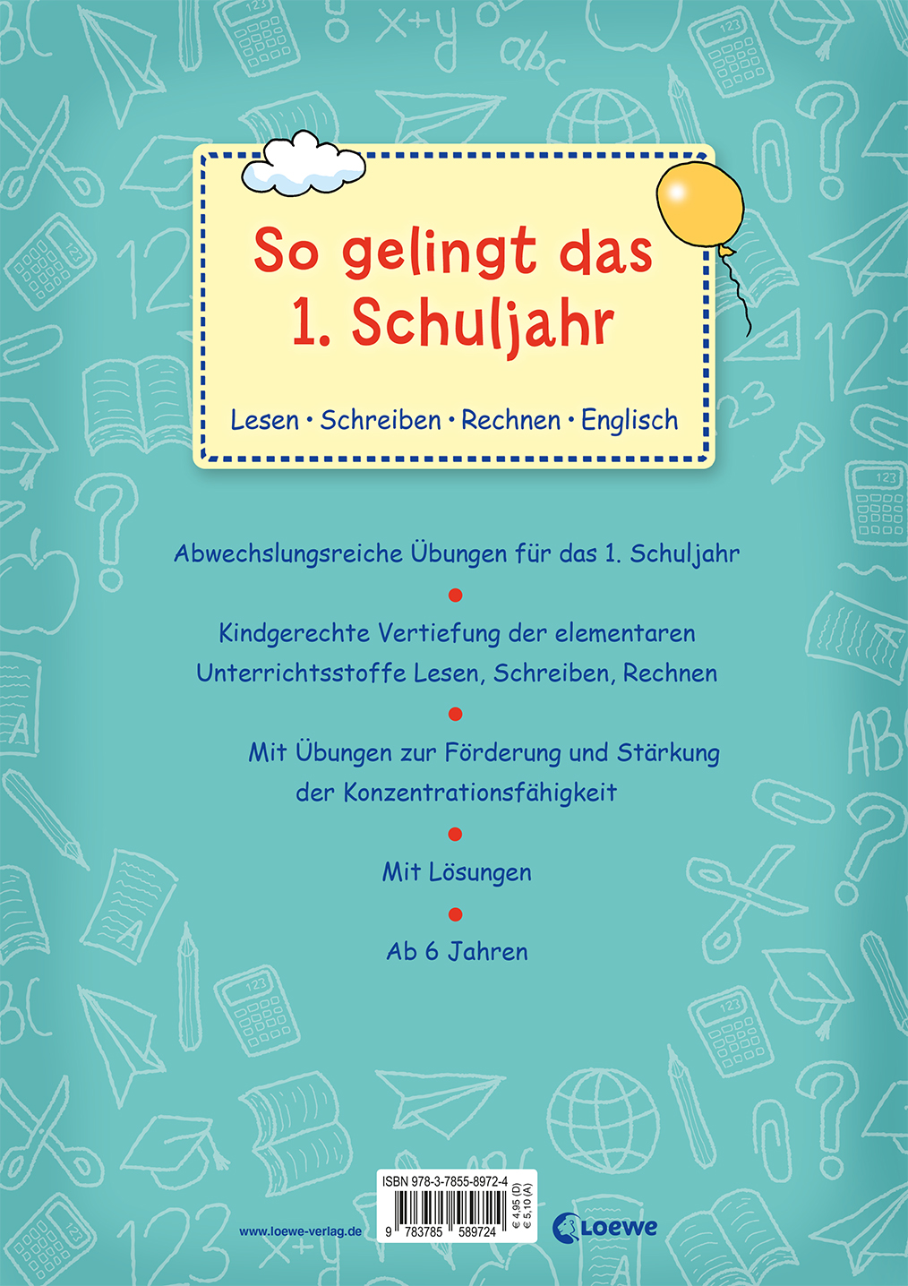 Mit diesen abwechslungsreichen Übungen und Rätseln ist der Schulerfolg garantiert! Die spannenden Aufgaben zu den wichtigsten Unterrichtsthemen Rechnen, Schreiben, Lesen, Englisch und Konzentration bereiten Kinder ab 6 Jahren spielerisch auf die Herausforderungen vor, die die 1. Klasse für sie bereithält. Die farbenfrohen Illustrationen sorgen zusätzlich für Abwechslung und ein Lernerlebnis, das Spaß und Wissen zugleich vermittelt. Durch die Lösungen am Ende des Bandes können die Schüler selbst kontrollieren, ob sie die Rätsel richtig gelöst haben.