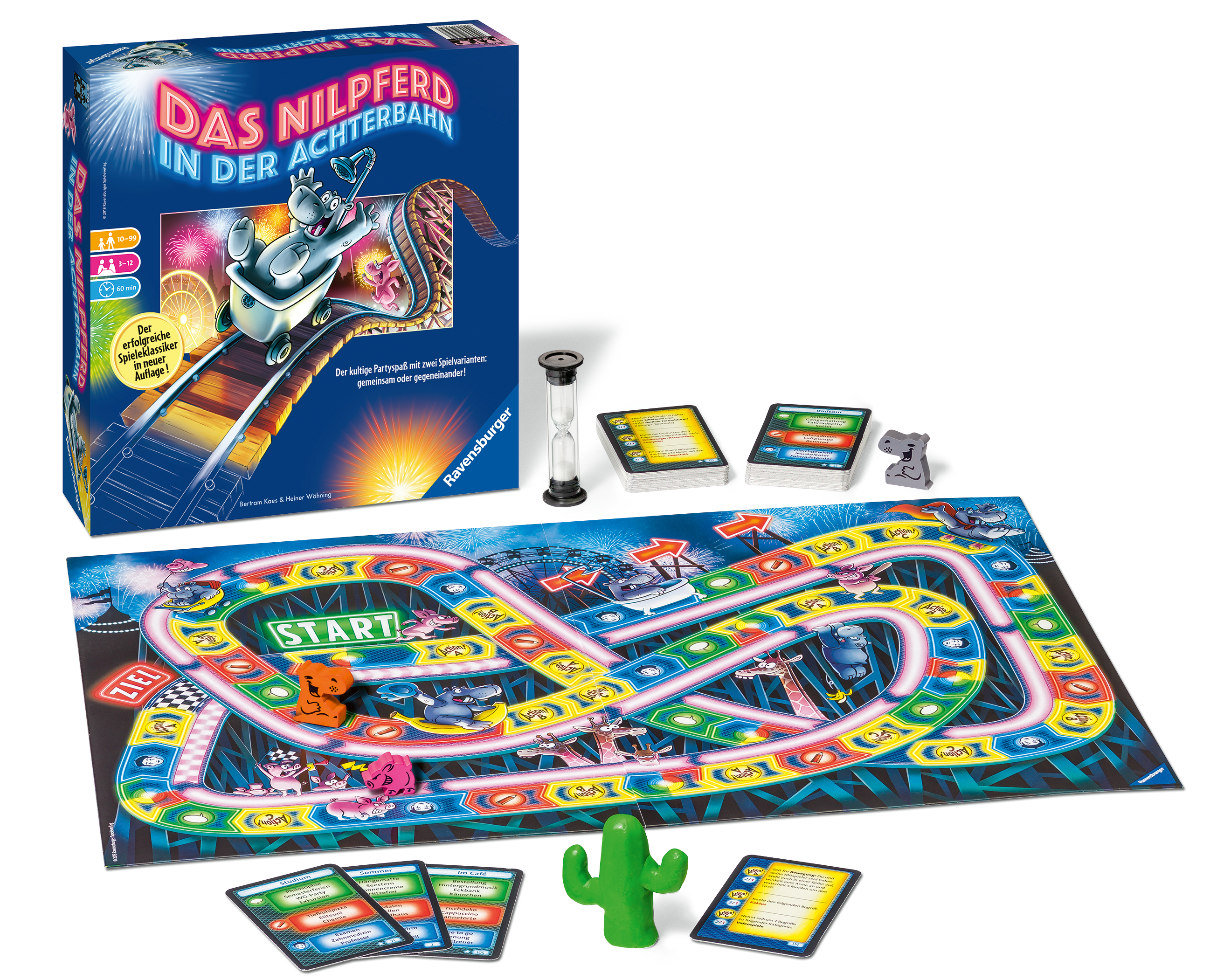 Der kultige Partyspaß in neuer Auflage! Zum 30-jährigen Jubiläum kehrt das Nilpferd in der Achterbahn zurück und präsentiert sich in einer modernen Neufassung. Neue Aufgaben und zwei spannende Spielvarianten garantieren gute Unterhaltung und viel Abwechslung. Es kann entweder in zwei Teams gegeneinander angetreten werden oder aber alle versuchen gemeinsam die fiese "Drecksau" zu schlagen! Dazu muss umschrieben, gezeichnet und geknetet werden, was das Zeug hält.