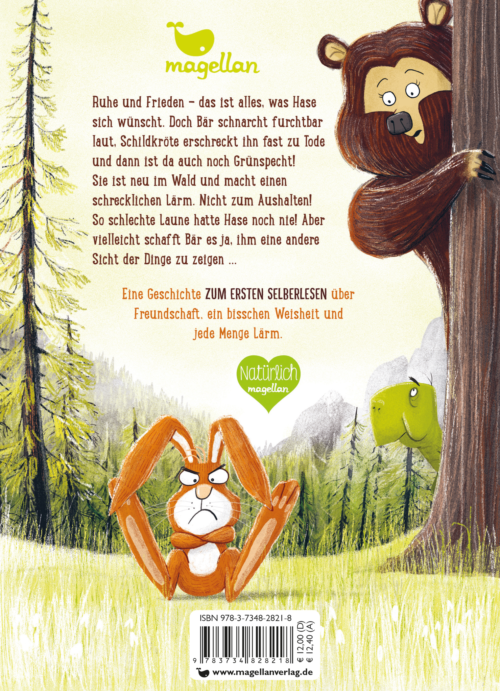 Ruhe und Frieden - das ist alles, was Hase sich wünscht. Doch Bär schnarcht furchtbar laut, Schildkröte erschreckt ihn fast zu Tode und dann ist da auch noch Grünspecht! Sie ist neu im Wald und macht einen schrecklichen Lärm. Nicht zum Aushalten! So schlechte Laune hatte Hase noch nie! Aber vielleicht schafft Bär es ja, ihm eine andere Sicht der Dinge zu zeigen ...
