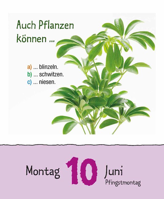 | Schlagworte | 365 • abreiser • Abreißen • Abreißkalender • Blätter • Einzelne • Erziehung • Familie • für • Geschenk • Humor • JEDEN • Jugendliche • Jungen • Kids • Kinder • Lernen • Quiz • Rätsel • Rückwand • Tag • Tage • Tages-Kalender • Tisch-Kalender • Unnützes • Weihnachten • Wissen |