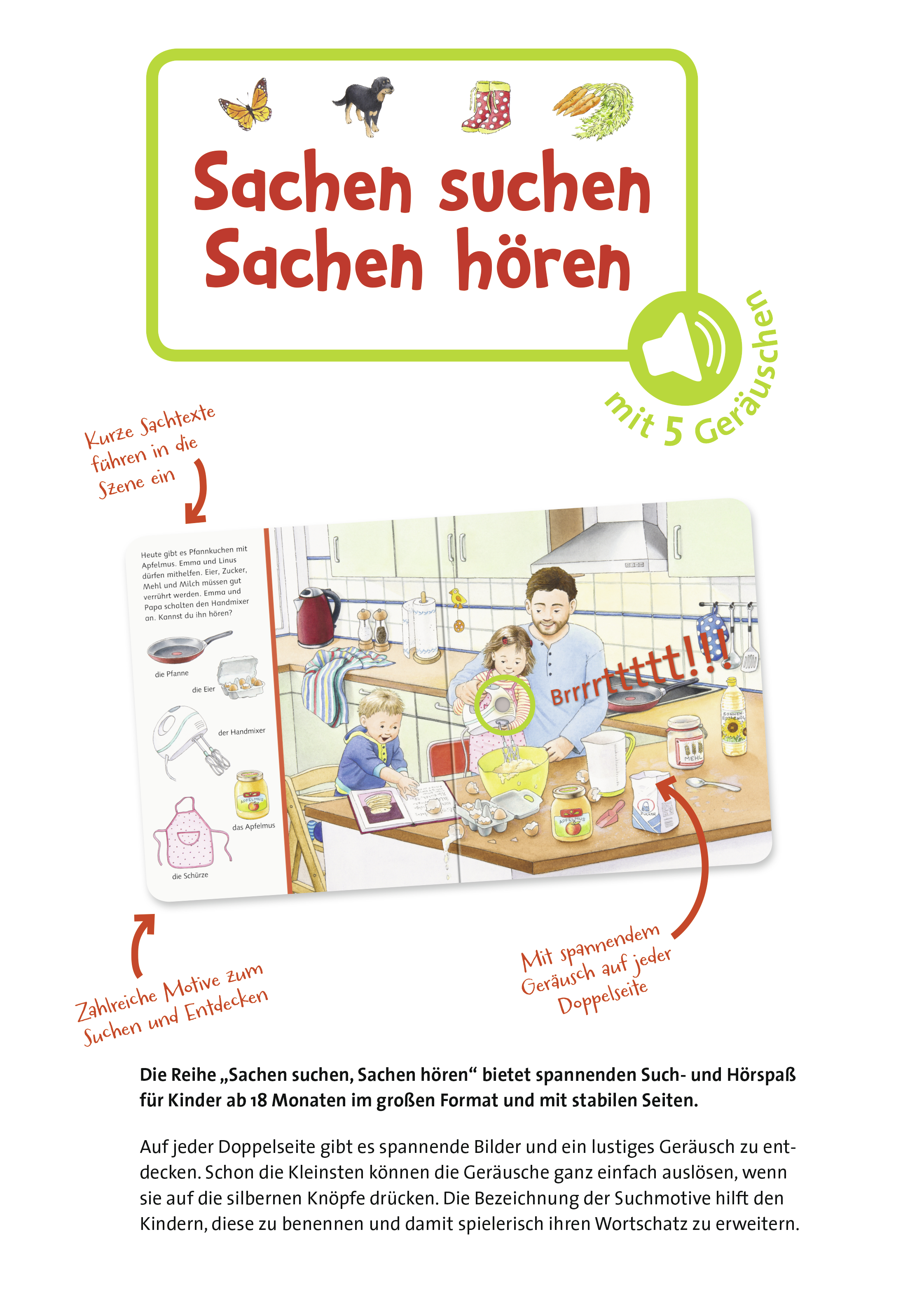Das erste „Sachen suchen“- Buch mit fünf Alltagsgeräuschen!
