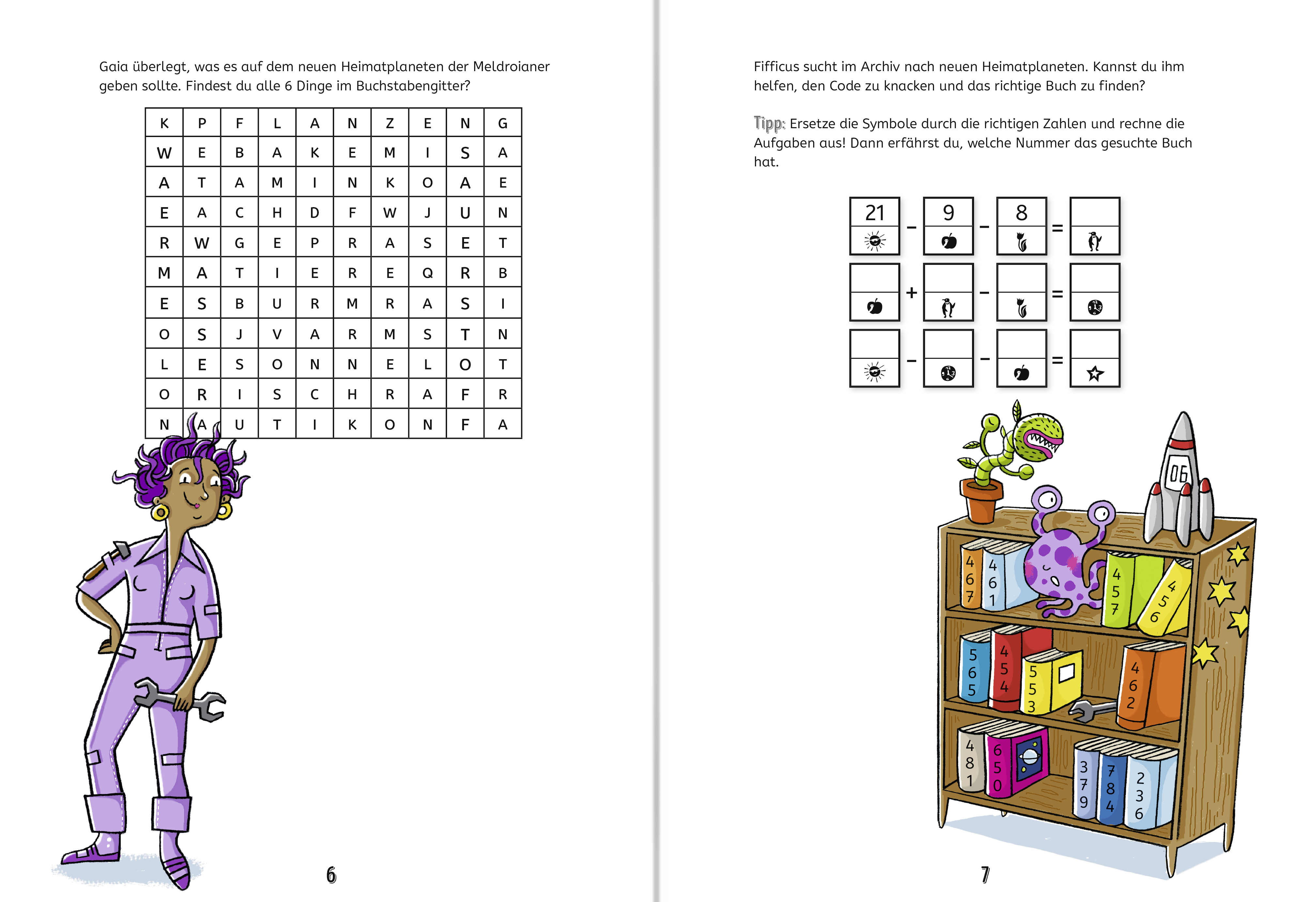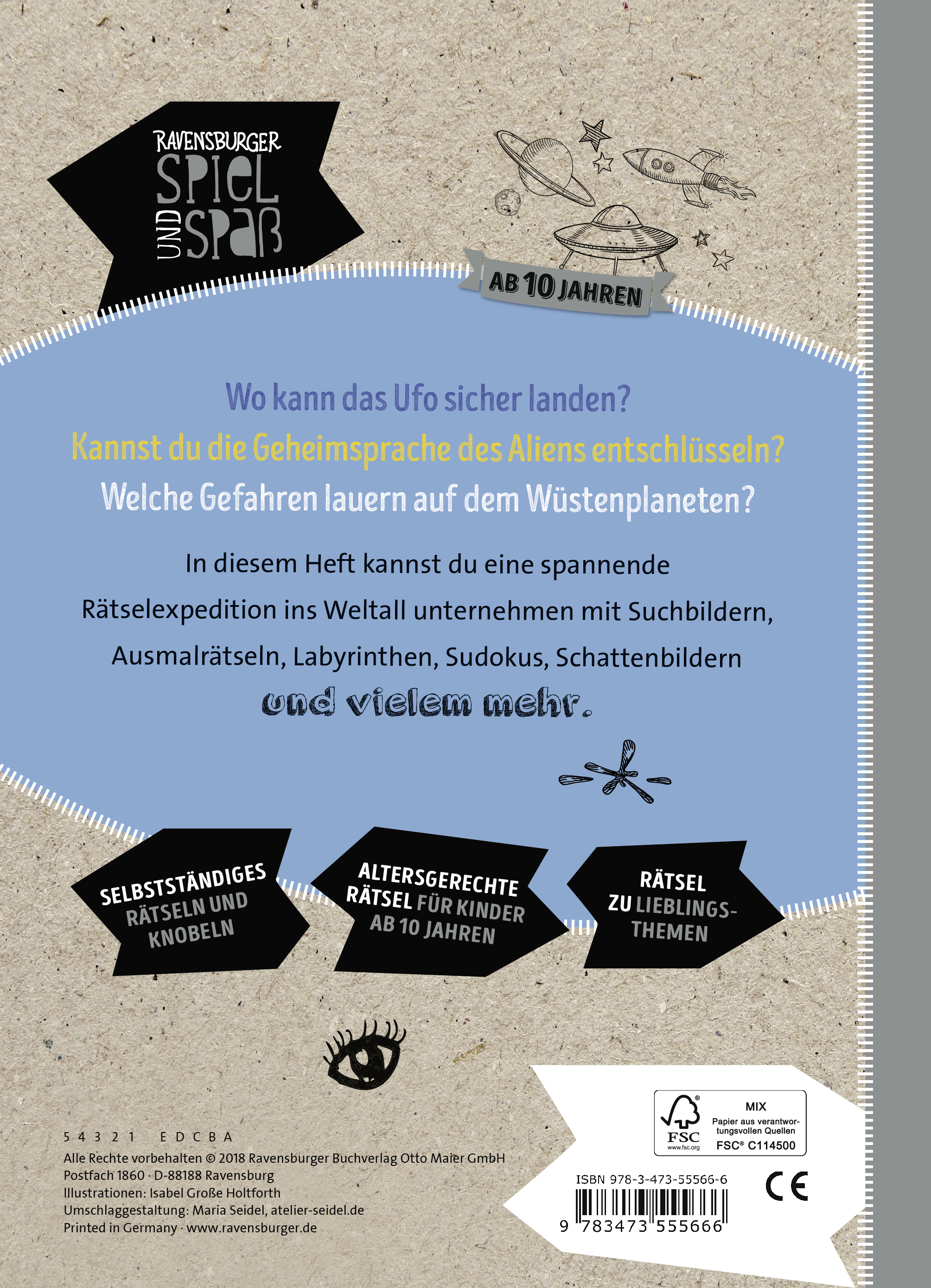 Wo kann das Ufo sicher landen? Welche Gefahren lauern auf dem Wüstenplaneten? Wer entschlüsselt die Geheimsprache des Aliens? Suchbilder, Ausmalrätsel, Labyrinthe, Sudokus und vieles mehr sorgen für eine spannende Rätselexpedition ins Weltall.
