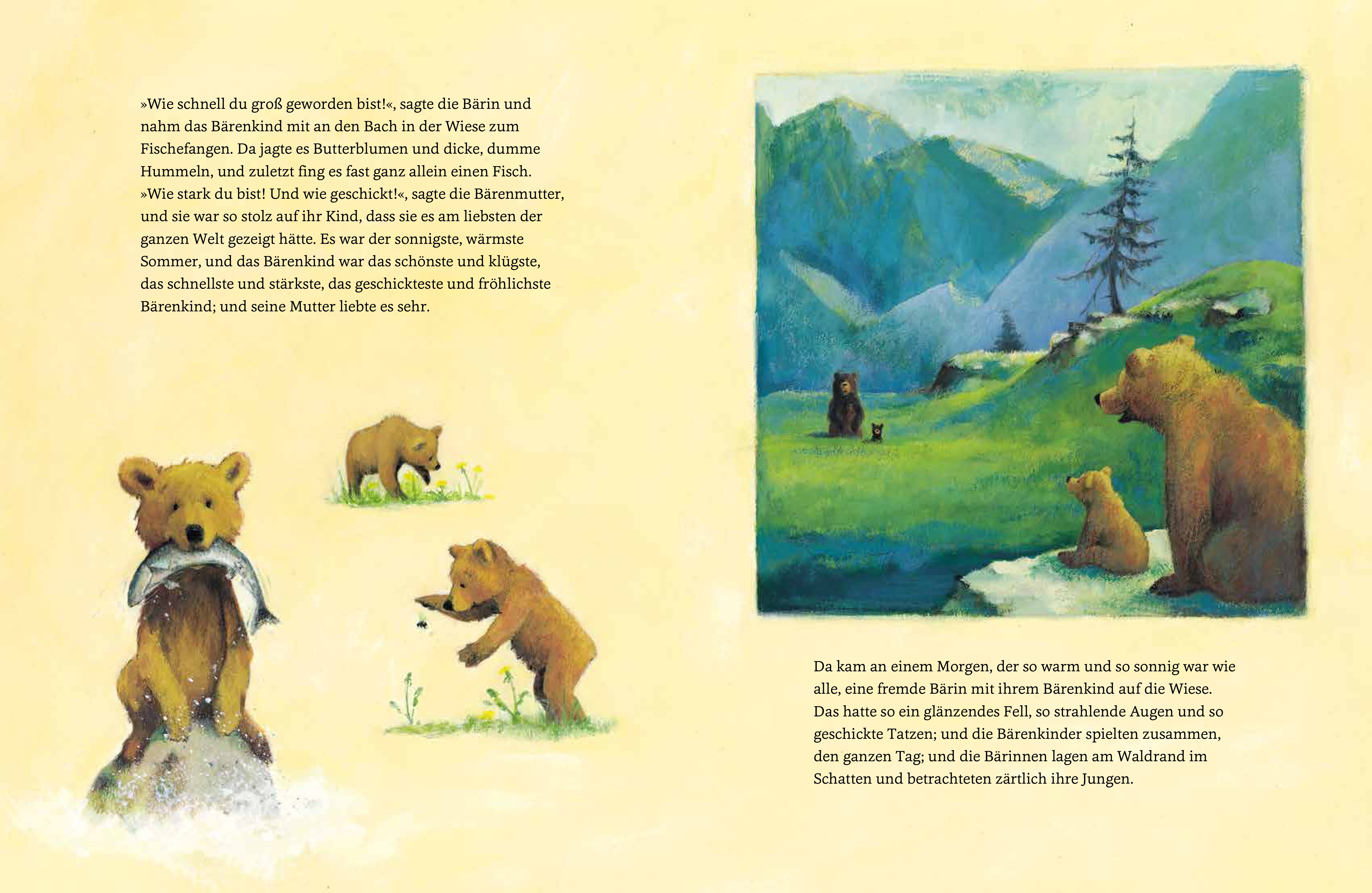 Kirsten Boie erzählt von einem Bärenkind, das weiß, was es kann. Einst lebte in den Bergen eine Bärin mit ihrem Kind. Das hatte so strahlende Augen und glänzendes Fell, dass die Bärenmutter ihr Kleines für das schönste der Welt hielt. Das Bärenkind wuchs heran. Als es bemerkte, dass andere Bärenkinder auch hübsch sind, wurde es sehr traurig. Bis eines Tages ein hungriger alter Bär das kleine Bärenkind um Hilfe bat. Da merkte das Bärenkind, dass es zwar nicht das schönste von allen war, aber dafür geschickt genug, einen hilflosen alten Bären vor dem Verhungern zu retten. Der Klassiker von Kirsten Boie "Bärenmädchen", stimmungsvoll von Katrin Engelking illustriert, ermutigt dazu, eigene Fähigkeiten kennenzulernen und auf sie zu vertrauen.