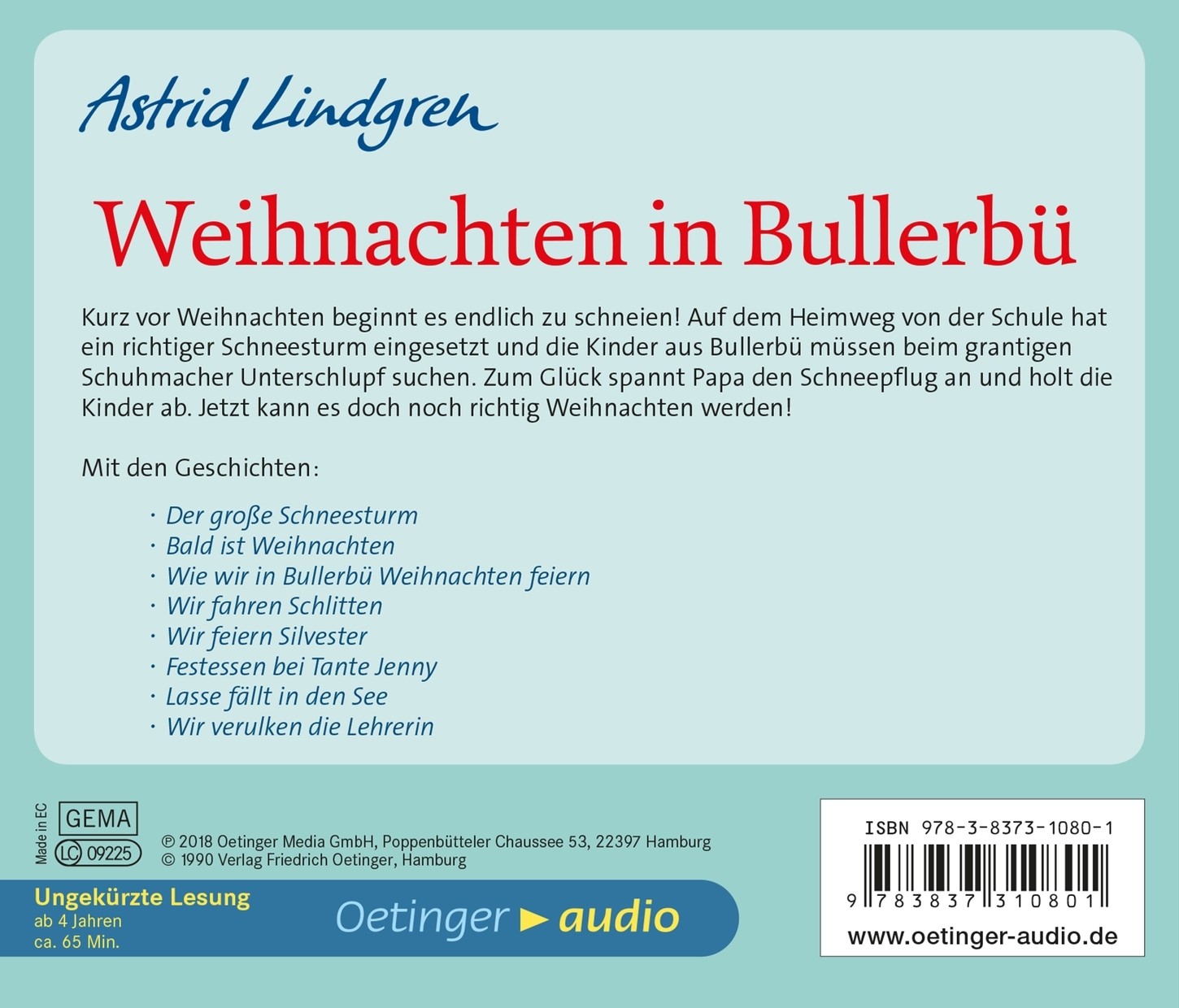 | Schlagworte | Advent • Alltagsabenteuer • Bauernhof • Familie • Freundschaft • Heile Welt • hygge • Idylle • Kinderalltag • Kinderbuch ab 4 • Klassiker • Landleben • naturverbunden • Nostalgie • Schweden • Skandinavien • Weihnachten |