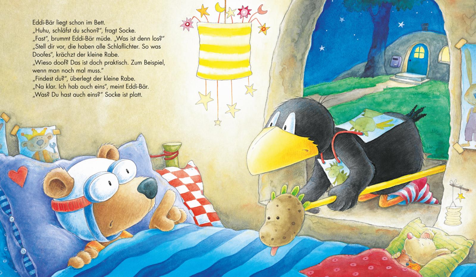 Der kleine Dachs erzählt, dass alle ein Schlaflicht haben, mit dem man besser einschläft. Das hat Socke nicht gewusst. Und wieso hat er keins? Aber dann findet der kleine Rabe ein ganz besonderes Schlaflicht ...