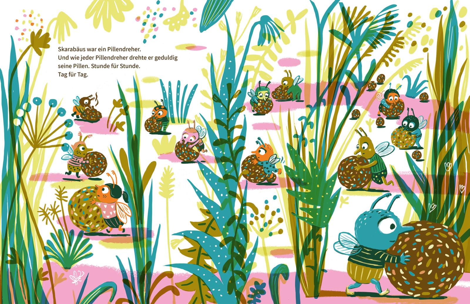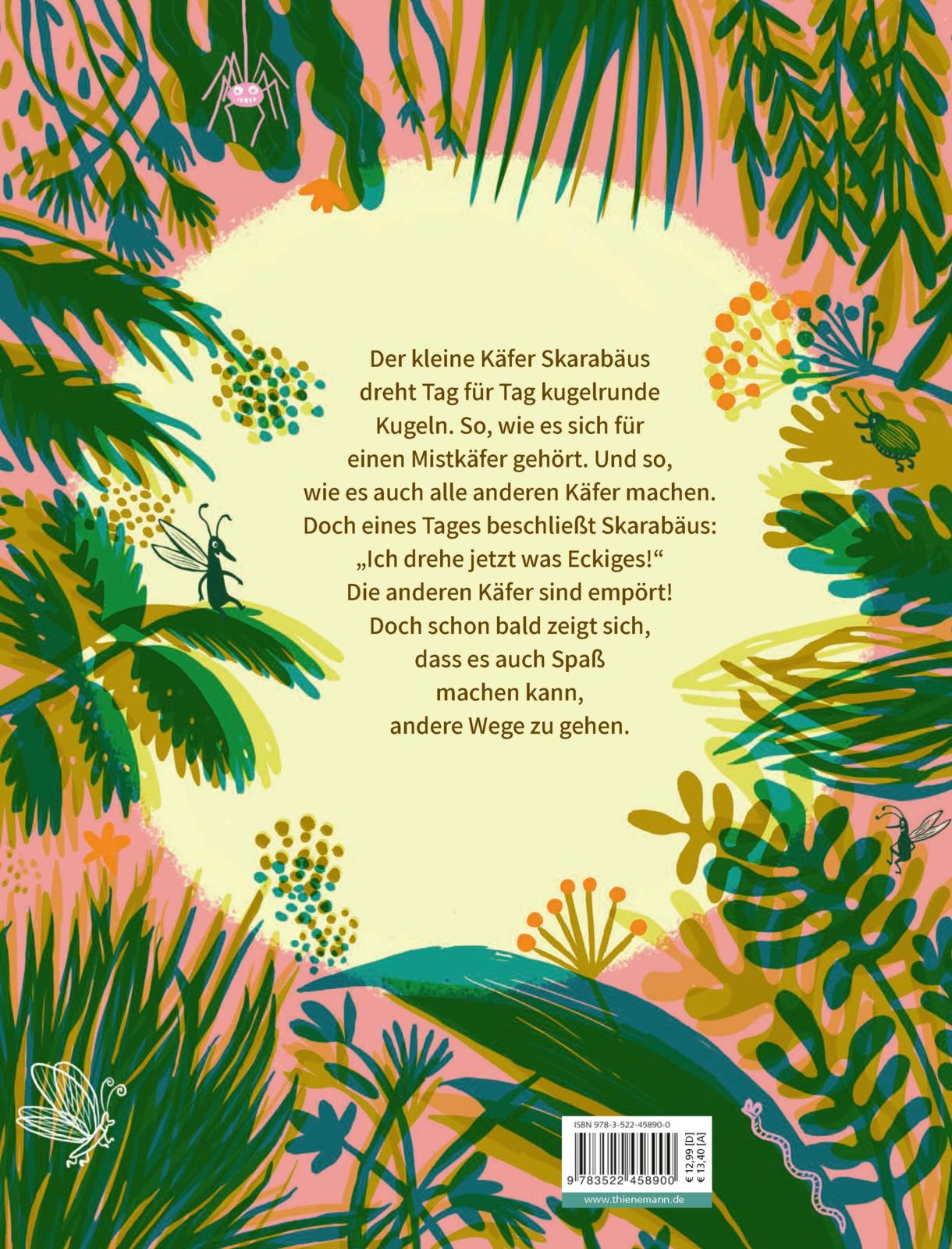 Der kleine Käfer Skarabäus dreht Tag für Tag kugelrunde Kugeln. So, wie es sich für einen Mistkäfer gehört. Und so, wie es auch alle anderen Käfer machen. Doch eines Tages beschließt Skarabäus: "Ich drehe jetzt was Eckiges!" Die anderen Käfer sind empört! Doch schon bald zeigt sich, was alles möglich ist, wenn man sich nur die Freiheit nimmt.