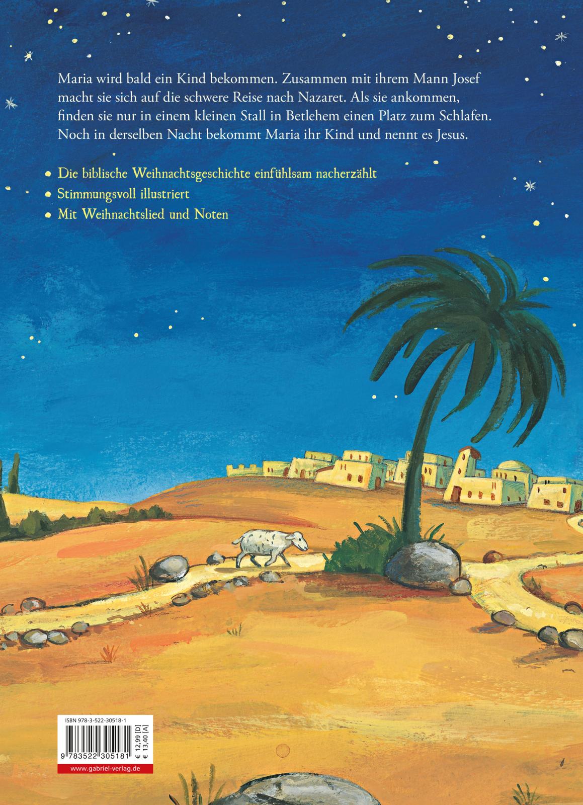 Mit einfühlsamen Worten und stimmungsvollen Bildern lernen Kinder in diesem Buch die biblische Weihnachtsgeschichte kennen: Von Maria und Josef, die keinen Platz in einer Herberge finden, über die Geburt Jesu im Stall, bis hin zu den Hirten auf dem Feld und den drei Weisen aus dem Morgenland.