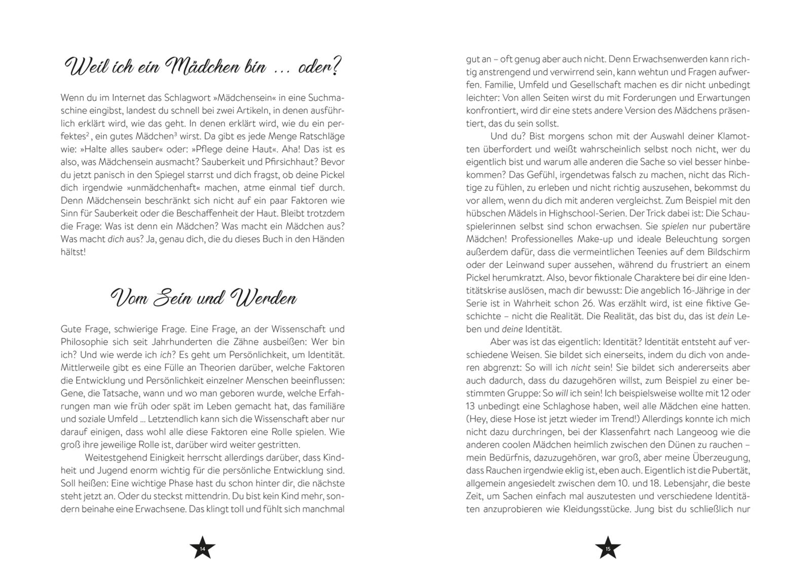 Ratgeber für Mädchen ab 13 Jahren. Mit jeder Menge Listicles, Tipps und Porträts von Vorbildern.Hast du dich schon mal gewundert, warum es Regeln gibt, die scheinbar nur für Mädchen gelten? Willst du gerne mehr über Bodyshaming, Selfcare und Gleichberechtigung erfahren? Findest du Mädchen und Frauen, die ihr eigenes Ding durchziehen, spannend? Dann bist du hier genau richtig!Mit Kurzporträts von historischen und aktuellen Vorbildern, Checklisten und Anleitungen (Wie erkenne ich alltäglichen Sexismus? Wie kann ich dem Konsum-Wahnsinn entkommen?) und Einblicke in die Welt der Jungen.