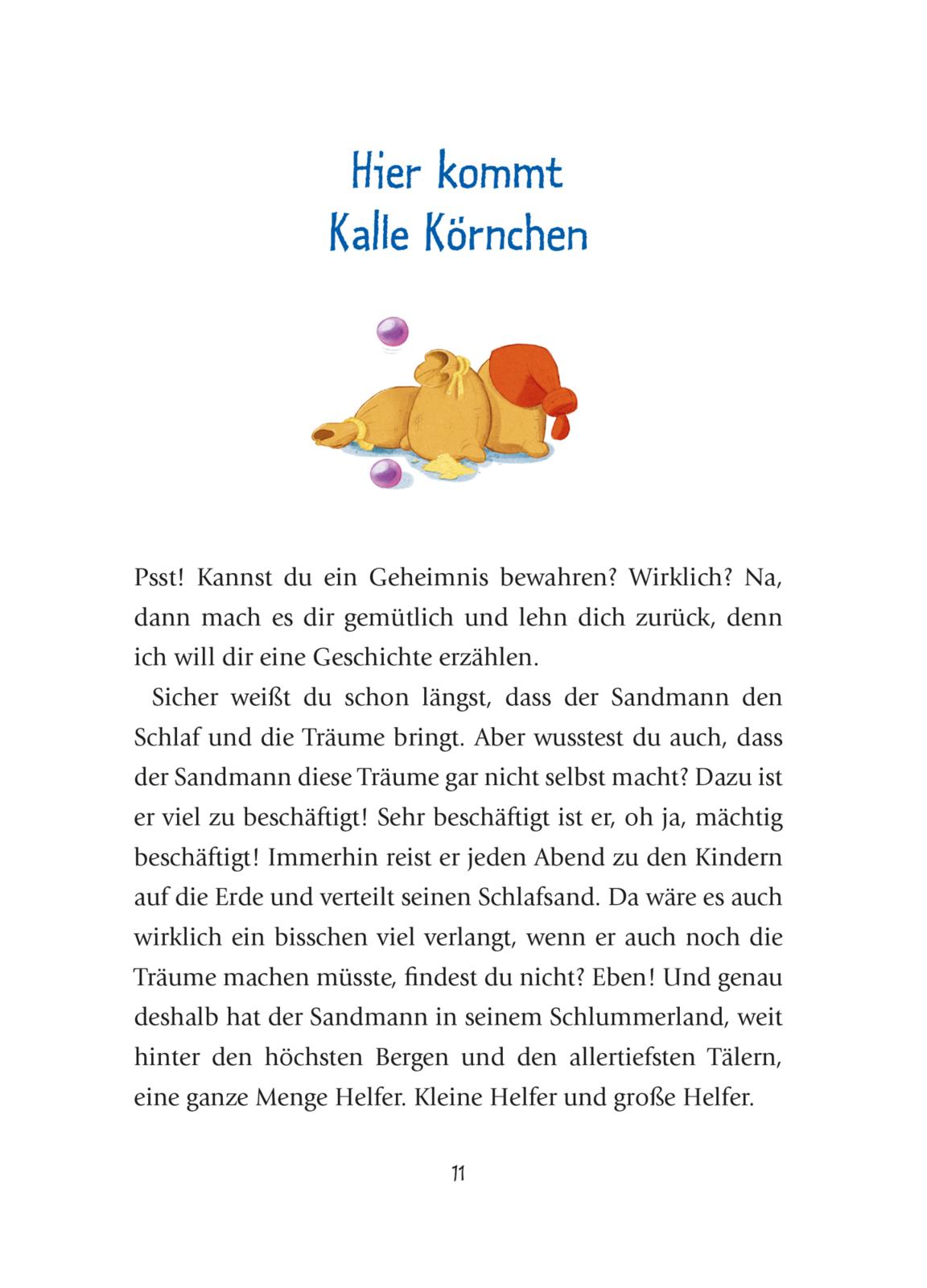 Als Urlaubsvertretung des Sandmanns erleben Traumwichtel Kalle Körnchen und sein Freund Flick die tollsten Abenteuer! Sie zähmen übermütige Schäfchen, bringen einem Sternschnuppen-Mädchen das Fliegen bei und finden verschwundene Traumblasen wieder. Mit jeder Menge funkelndem Schlafsand im Gepäck nehmen es die Freunde selbst mit der größten Schnarchnase auf ...