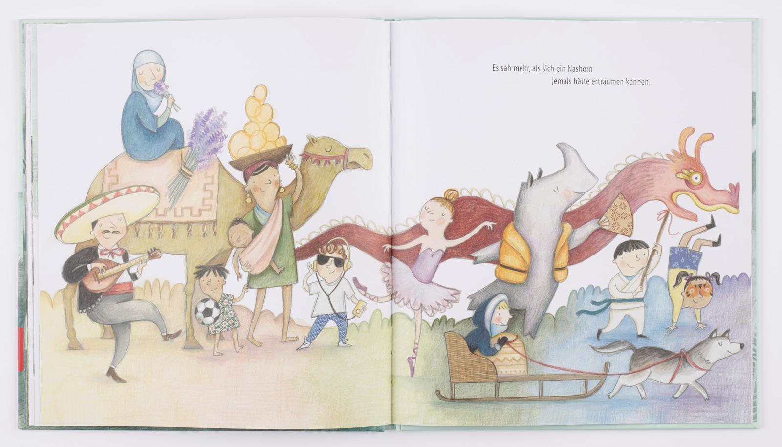"Dass es mit seiner Vorstellungskraft zu großen Abenteuern aufbricht und schließlich auch kleinere Nashörner ermutigt, ihren Traum zu leben, zeichnet dieses bestärkende Bilderbuch besonders aus."