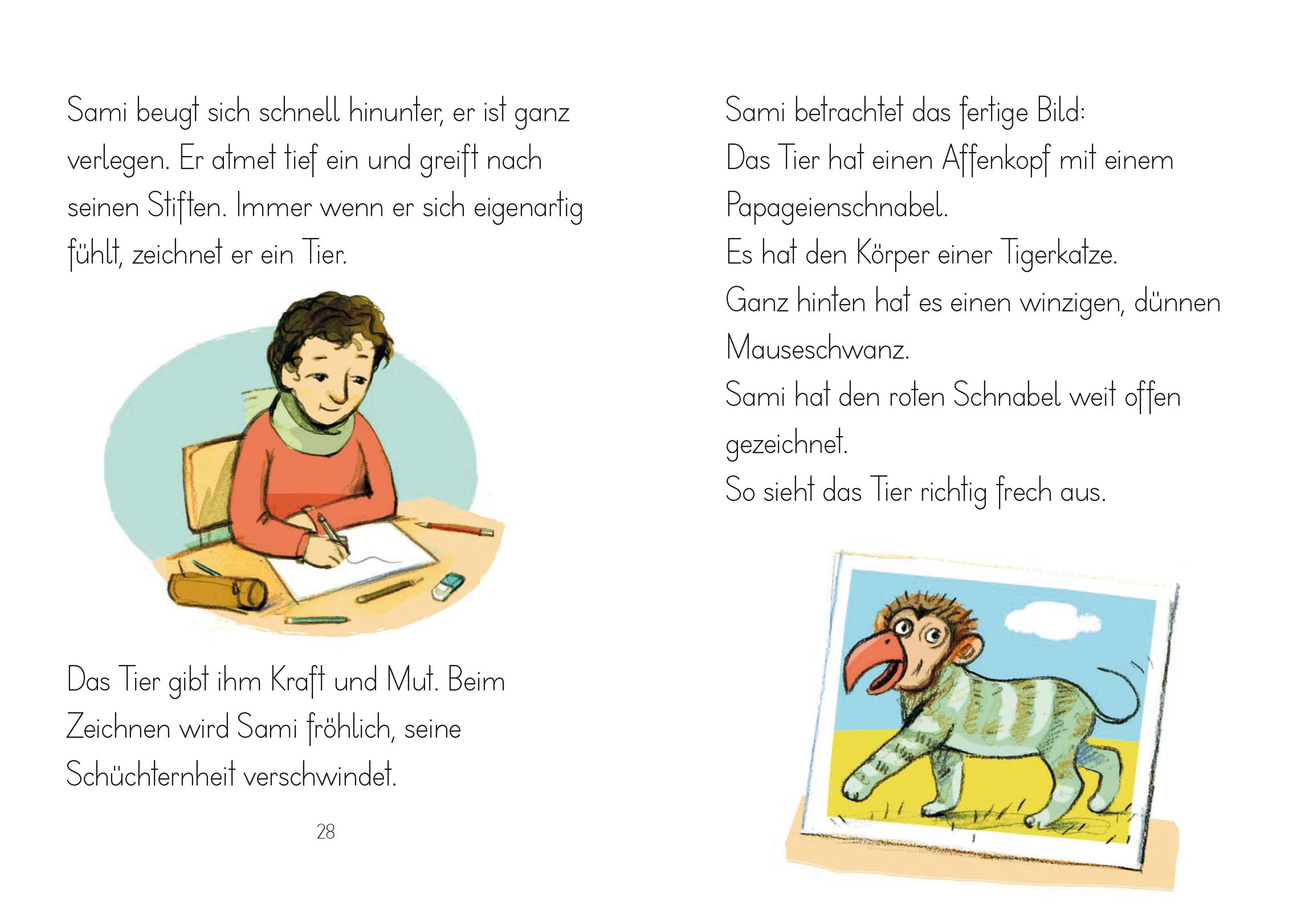 So gelingt Klassengemeinschaft In der bunten Klasse ist immer etwas los: Es wird geredet, gelacht, gestritten und gelernt. Sami ist erst kurz in der Klasse. Oft versteht er nicht, was die Lehrerin sagt, und fühlt sich dann wie ein Eisbär, allein auf einer Eisscholle. Beim Zeichnen von Fantasie-Tieren fasst Sami wieder Mut. Bald interessieren sich auch die anderen Kinder für sein Talent und Sami wird Teil der Klassengemeinschaft.
