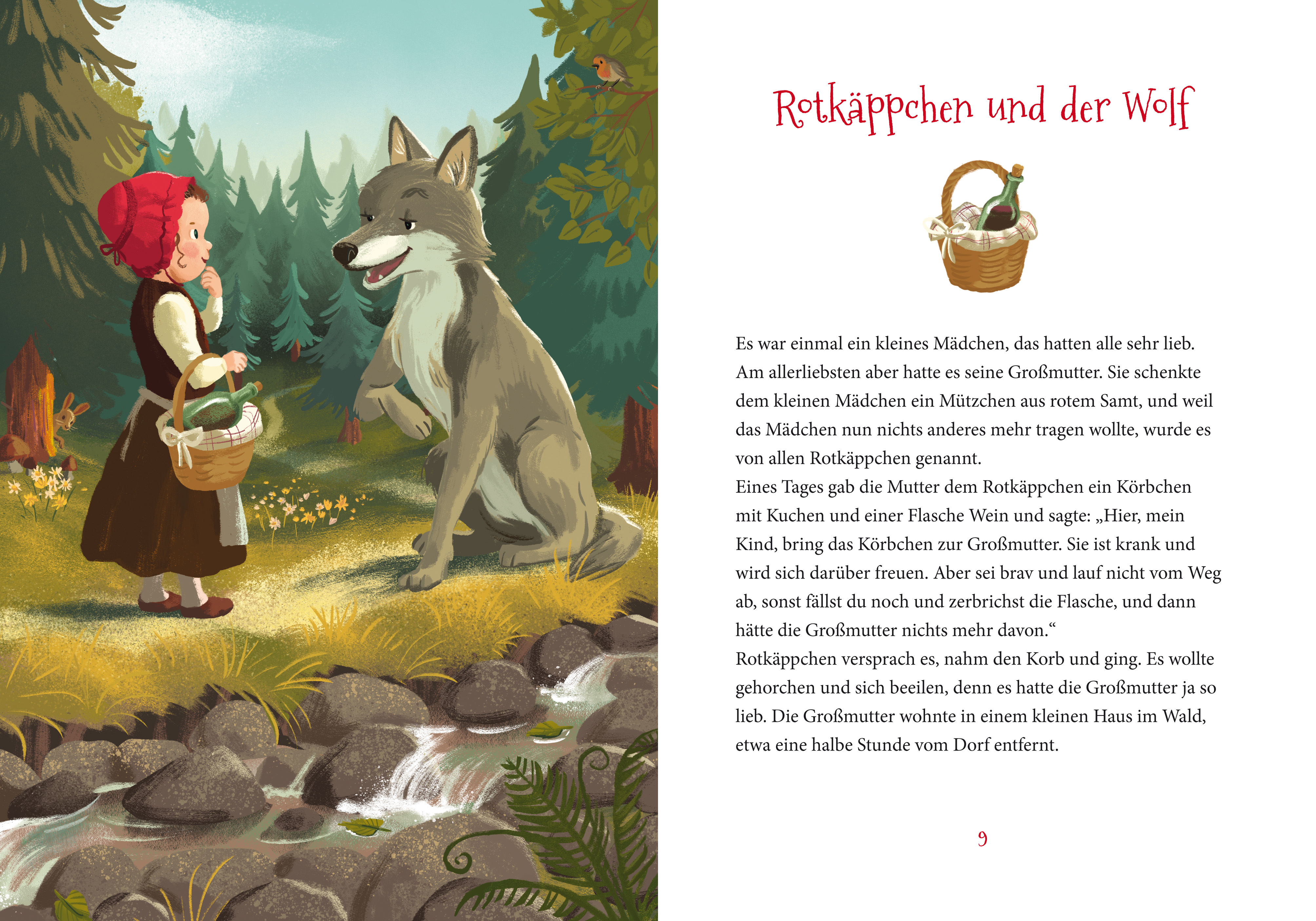 In Grimms Welt der Märchen finden sich verwunschene Prinzen und verzauberte Schlösser, listige Wölfe und böse Hexen, lustige Zwerge und reizende Prinzessinnen. Diese aufwendig gestaltete und behutsam nacherzählte Märchensammlung enthält 15 der schönsten und beliebtesten Märchen, darunter Klassiker wie Rotkäppchen und der Wolf, Dornröschen, der gestiefelte Kater, Schneewittchen und noch viele mehr.