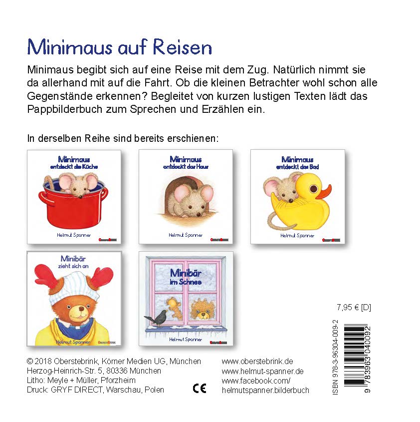 Minimaus begibt sich auf eine Reise mit dem Zug. Natürlich nimmt sie da allerhand mit auf die Fahrt. Ob die kleinen Betrachter wohl schon alle Gegenstände erkennen? Begleitet von kurzen lustigen Texten lädt das Pappbilderbuch zum Sprechen und Erzählen ein.