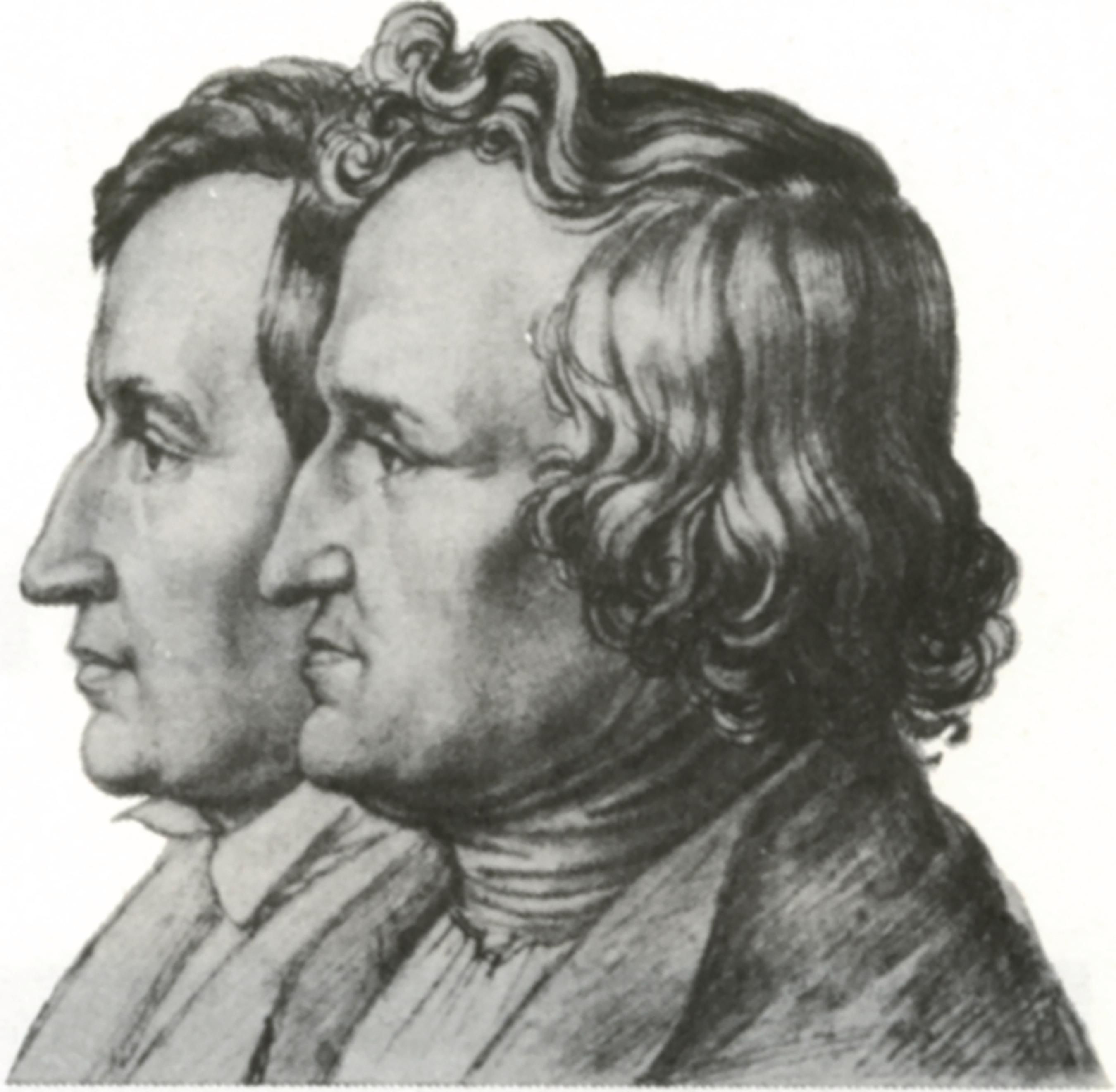 Jakob Ludwig Karl Grimm wurde am 4.1.1785 in Hanau geboren, sein Bruder Wilhelm Karl Grimm am 24.2.1786 am gleichen Ort. Der Vater war Jurist. Die Kinder lebten die ersten Jahre ihrer Jugend in Steinau und sie besuchten das Lyceum in Kassel. Seit 1829 bzw. 1839 waren sie Professoren in Kassel. Aufgrund ihrer Teilnahme am Protest der "Göttinger Sieben" wurden sie des Landes verwiesen. Seit etwa 1840 lebten beide in Berlin. Wilhelm Grimm starb am 16.12.1859 in Berlin, sein Bruder am 20.9.1863 am gleichen Ort.