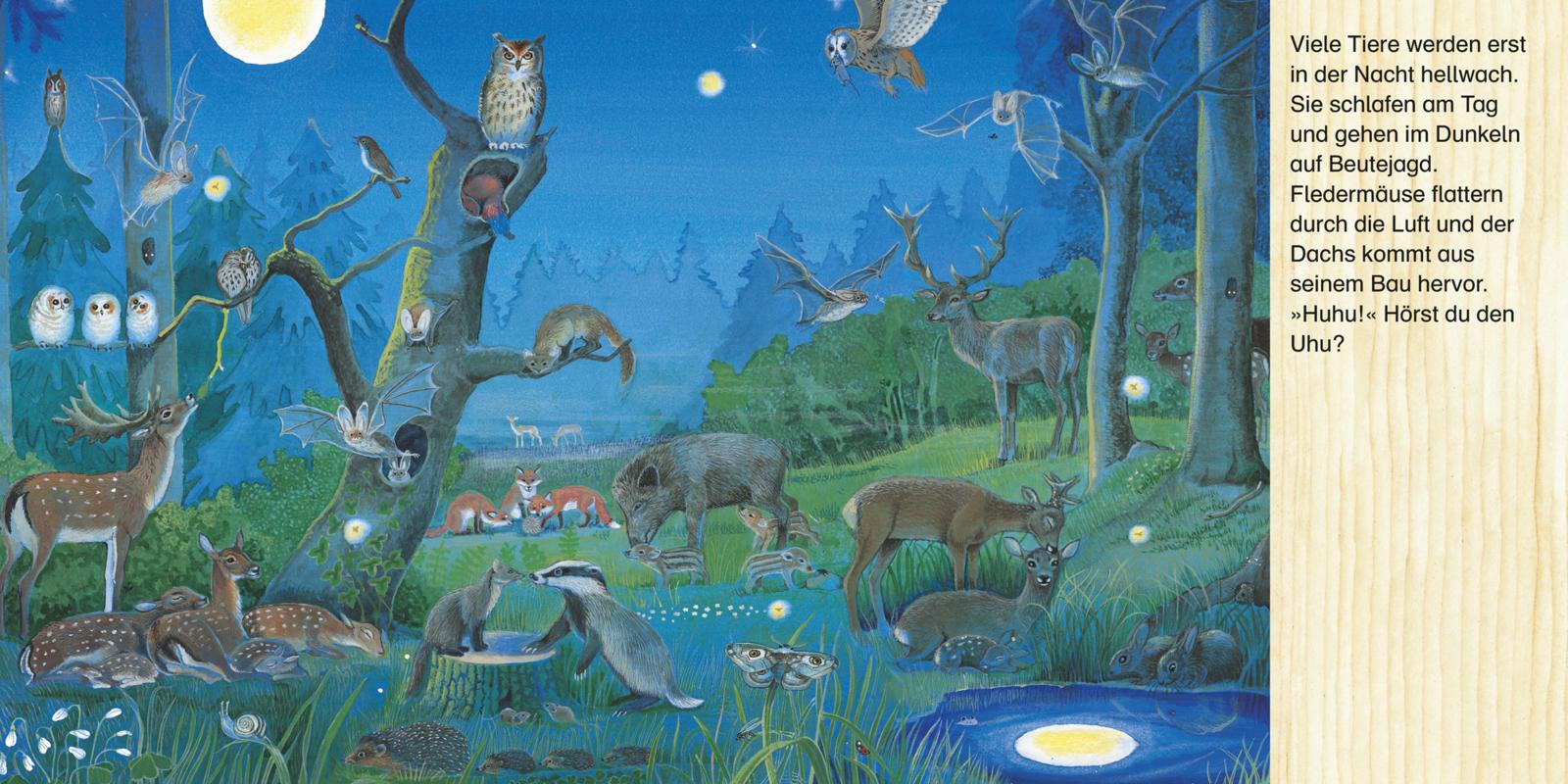 Im Wald gibt es so viel Spannendes zu entdecken: Wo hat sich der kleine Igel versteckt? Welche Tiere leben unter der Erde? Und was macht das Eichhörnchen im Winter? Spannende Wimmelbilder zum Suchen, Staunen und Weitererzählen - viel Spaß im Wald!