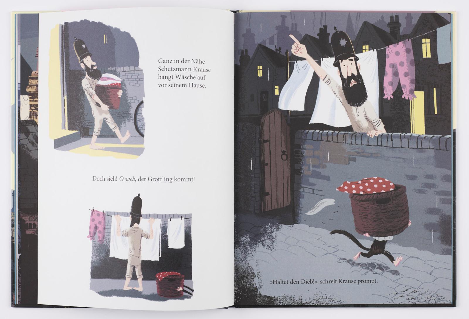 Rubi kann nicht schlafen. Irgendetwas knackt. Sam spürt einen kalten Lufthauch. Und Schutzmann Krause vermisst sein gepunktetes Bettlaken. Ein geheimnisvolles Wesen spukt umher. Und immer mehr Dinge verschwinden. Was steckt dahinter? Ob es wohl der Grottling ist?
