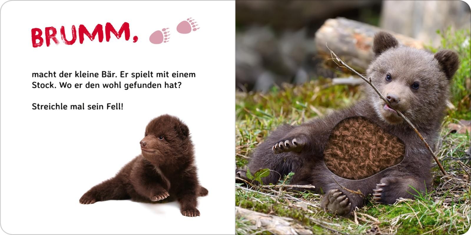 Das Lämmchen hat ein wollig weißes Fell, doch wie fühlt sich der kleine Bär an? Hochwertige Fotografien und abwechslungsreiche Fühlelemente laden zum Streicheln und Entdecken ein.