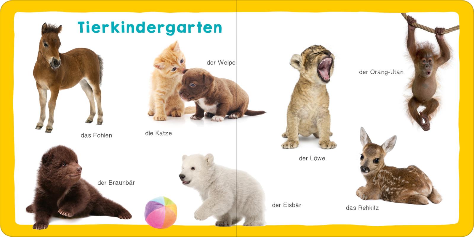 Ob Löwe, Bär, Frosch oder Katze - Kleinkinder lieben Tiere. In diesem ersten Wörterbuch haben sich alle Lieblingstiere versammelt. Hochwertige Fotografien und viele verschiedene Themenseiten laden zum Entdecken und Benennen ein. Ein Muss für kleine Tierfreunde!