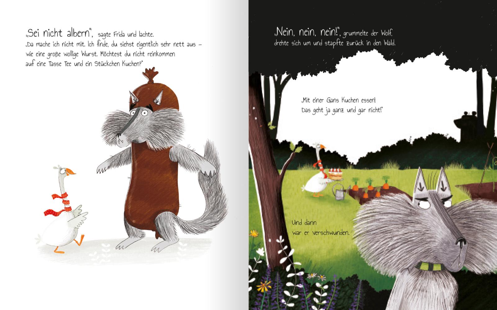Der Gans Frida Furchtlos kann man nicht so leicht Angst einjagen. Das müssen auch Wolf, Bär und Löwe einsehen, denn die kleine Gans möchte sich einfach nicht vor ihnen erschrecken! Doch die wilden Tiere zum Teetrinken einzuladen, das geht wirklich zu weit! ... oder?