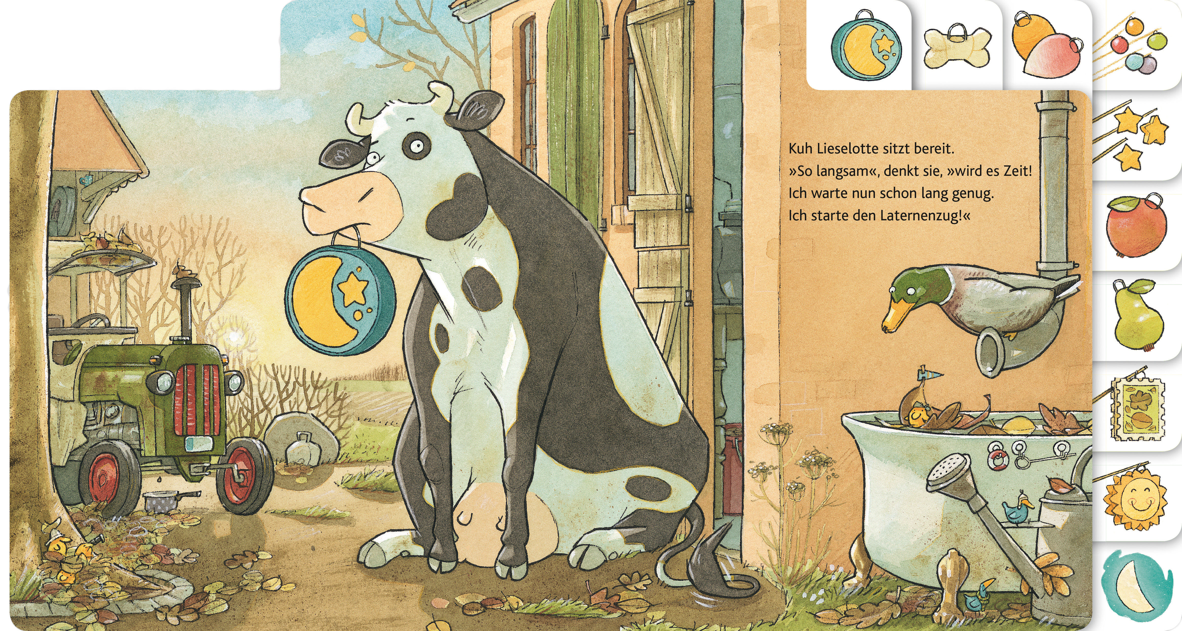 | Schlagworte | Bauernhof • Bauernhofbuch • Halloween • Herbst • Kuh • Laterne • Laternebuch • Laternen • Laternenumzug • Lieselotte • Pappbilderbuch • Postkuh • Register • Sankt Martin |