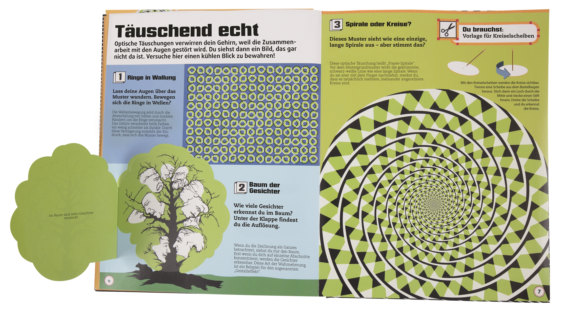 Ob 3-D-Treppe, unmögliches Dreieck oder unfassbares Spiegeldach - im Buch der optischen Täuschungen können Kinder die faszinierenden optischen Illusionen mit eigenen Augen erfahren, sie sogar selbst bauen und in kurzen knackigen Texten herausfinden, was eigentlich dahintersteckt.