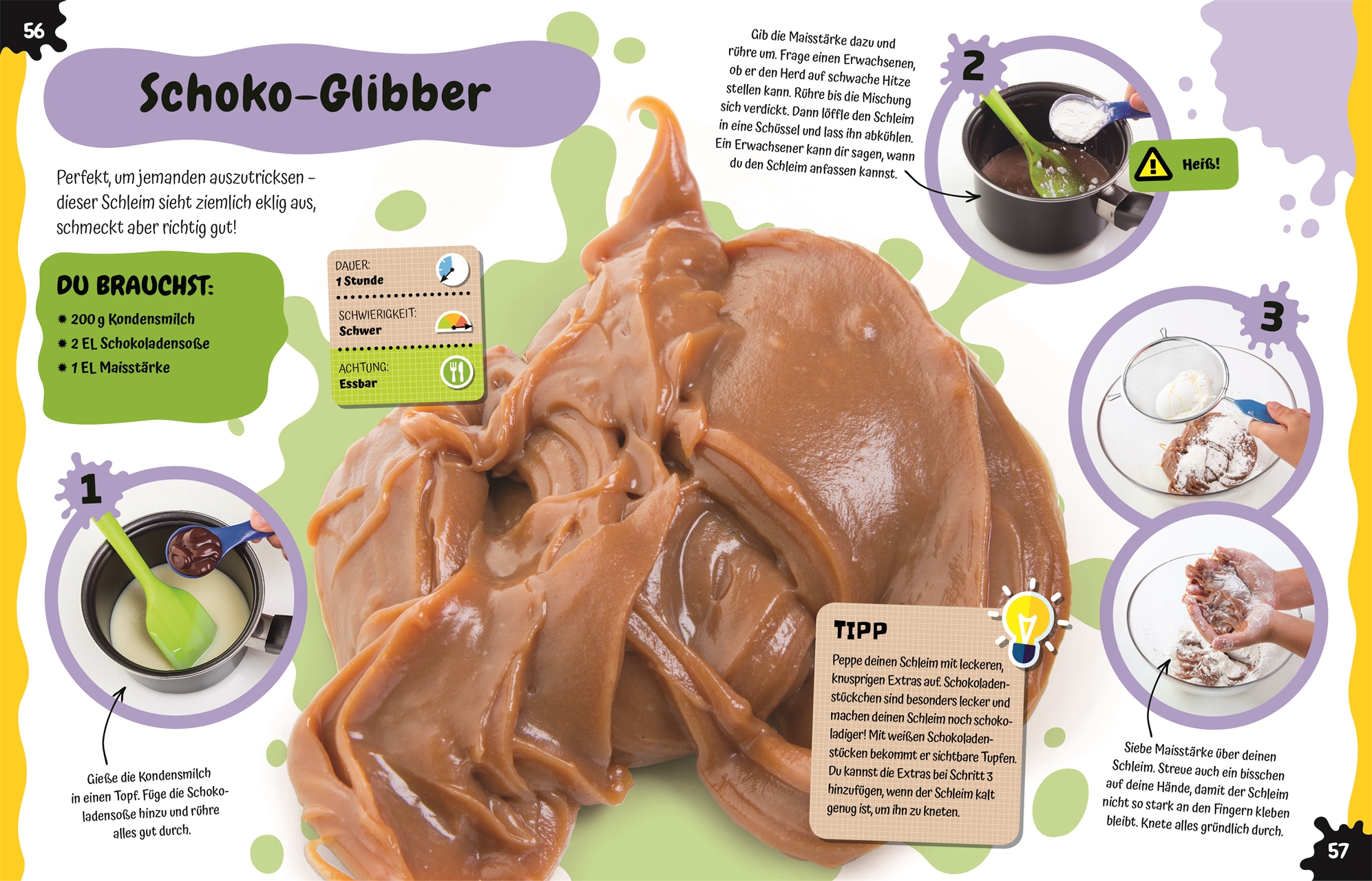 Experimentieren, matschen und erleben - genau das lieben Kinder! Hier können sie sofort damit loslegen und Schleim selber machen. Doch wie macht man Schleim? Das wird in leicht verständlichen, bebilderten Rezepten beschrieben. Farben und Extras für Glitzerschleim und Glibberschleim können selbst ausgewählt werden. Schritt für Schritt geht es dann zur eigenen, coolen Kreation - mal leuchtet der Schleim im Dunkeln, mal macht er witzige Knack-Geräusche, mal blubbert er vor sich hin und mal wird er mit Gummibärchen hergestellt und darf sogar genascht werden. An den zahlreichen Schleim-Variationen haben Kinder lange Freude. Sie sind auch ein Hit für jeden Kindergeburtstag und fördern zusätzlich die Kompetenzen der Kinder um Bereich MINT!