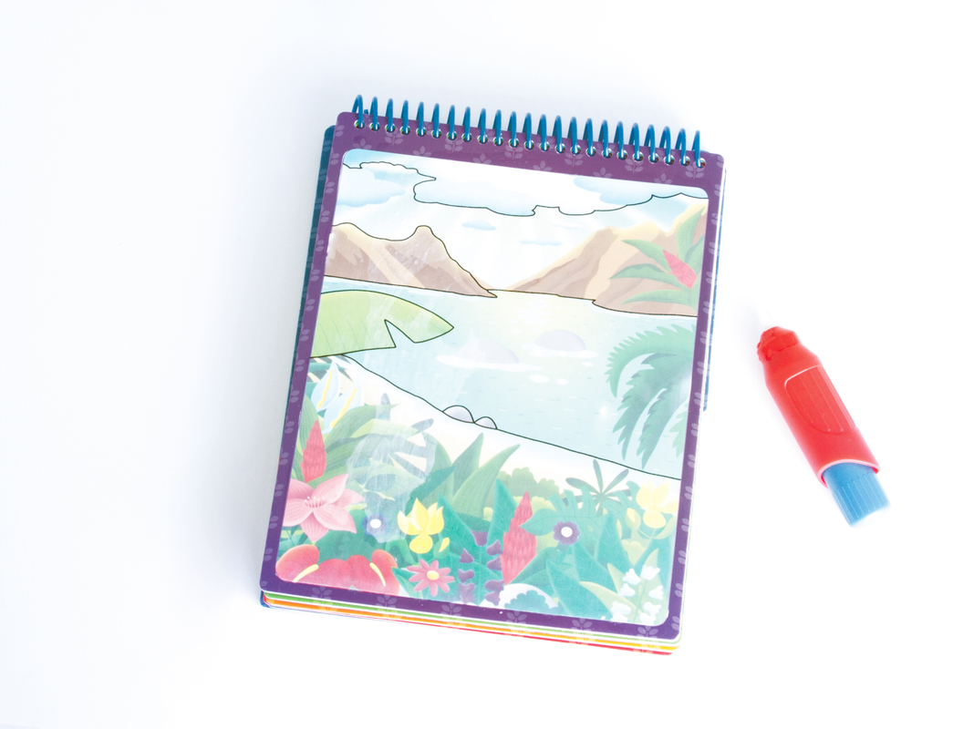 Mit diesem außergewöhnlichen Malbuch können Kinder auf spielerische Weise herausfinden, wie die Welt entstanden ist: Wenn man mit dem Wasser-Überraschungs-Pinsel über die weißen Flächen fährt, werden die farbigen Illustrationen sichtbar. Sobald die bemalten Seiten trocknen, verschwindet die Farbe wieder, und man kann von vorne beginnen. Der beiliegende Pinsel lässt sich dazu immer wieder neu mit Leitungswasser auffüllen.