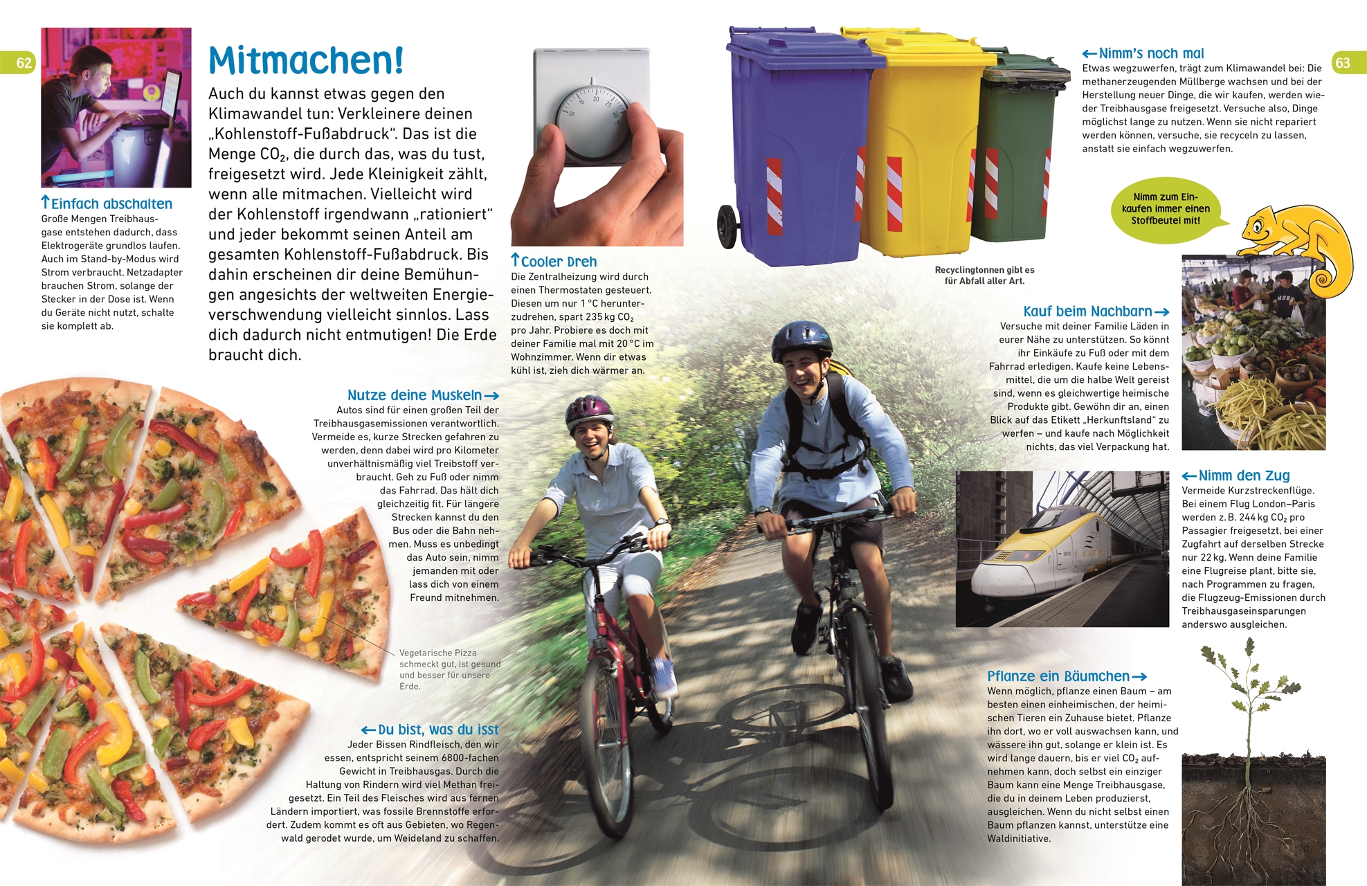 Eines der bedeutendsten Themen unserer Zeit für Kinder eindrucksvoll erklärt! In memo Wissen entdecken gibt s schlaues Wissen zum Klimawandel Treibhauseffekt, Meeresforschung, Energiesparen oder Kohlenstoff-Fußabdruck. Die beliebte Sachbuchreihe verpackt faszinierendes Wissen für Kinder in kurze, lesefreundliche Texte und viele detailreiche Bilder. Jetzt sogar im frischen, übersichtlichen neuen Layout und mit einem illustrierten Chamäleon-Charakter, der durchs Buch begleitet und beeindruckende Details erklärt oder kommentiert. Dazu gibt`s ein beidseitig bedrucktes Poster zum Aufhängen im Kinderzimmer mit einem spektakulären Foto auf der einen und einer informativen Grafik auf der anderen Seite.