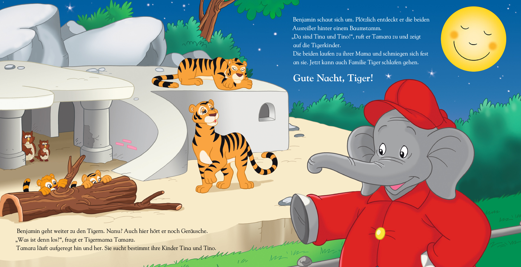 In dieser wunderschönen Geschichte nimmt Benjamin Blümchen alle nimmermüden Kleinen mit auf einen abendlichen Spaziergang durch den Zoo. Hier erleben sie, wie Benjamin nach und nach den Tieren beim Einschlafen hilft, bis er schließlich selbst ganz müde wird. Und bevor die kleinen Schlafmützen sich’s versehen, reisen auch sie ins Land der Träume…