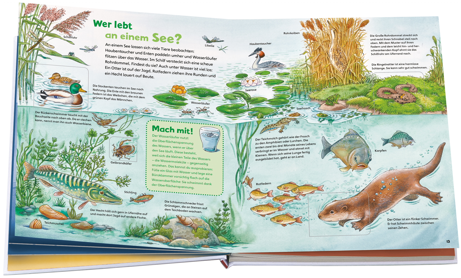 Warum sind Bienen und Insekten so wichtig? Wer lebt an einem See? Wie vermehren sich Pflanzen und Tiere?Raus in die Natur - es gibt unzählige spannende Dinge zu entdecken! Bei der Reise durch Berge und Meer, Stadt und Land kann auf den Seiten und hinter den Klappen neben Biber und Ameise auch noch der kleine Salamander entdeckt werden, der sich auf jeder Seite versteckt hat.