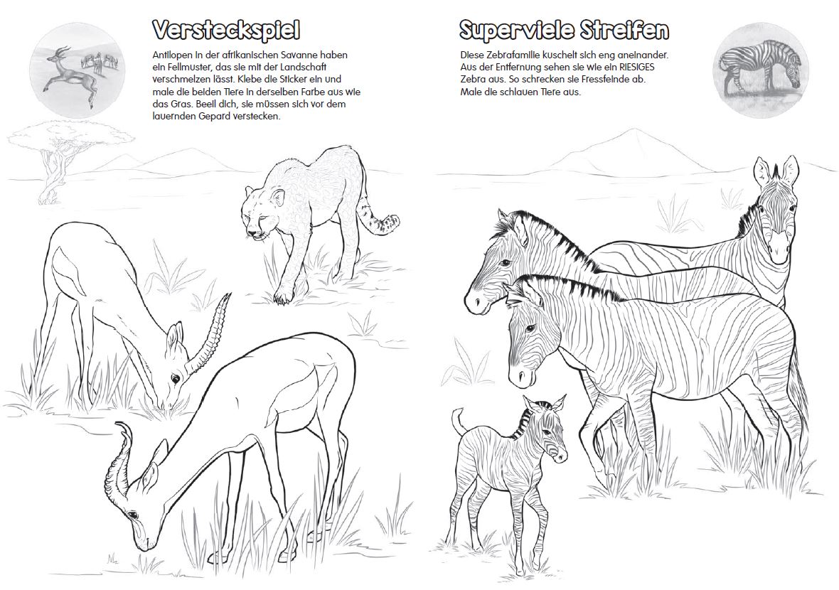 Malen und Stickern im Reich der TiereKleine Künstler können hier Tiere aus aller Welt ausmalen. Auf jeder Seite liefert ein passender Sticker zum Einkleben die Malvorlage. Alle Bilder sind zusätzlich mit wissenswerten Tierinfos versehen. Stundenlanger Kreativspaß garantiert!- Viele Tiere zum Ausmalen vor szenischem Hintergrund- Sticker zum Einkleben als Malvorlage- Tierinfos auf jeder Seite©Schleich