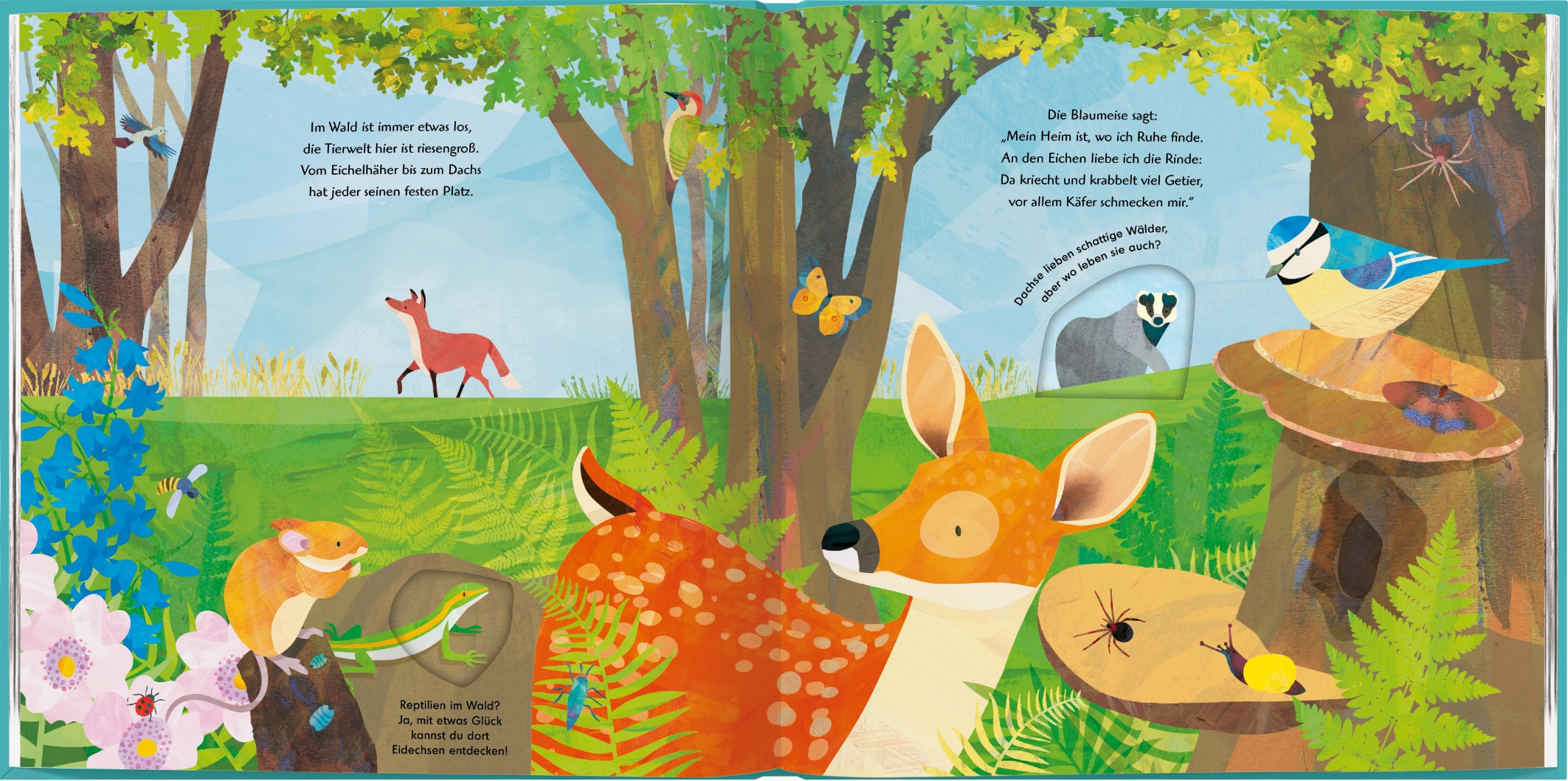 Jonny Lambert nimmt kleine und große Menschen mit auf eine Reise durch ganz unterschiedliche Lebensräume. Er macht auf die jeweils vorherrschende Artenvielfalt aufmerksam und zeigt durch geschickt platzierte Gucklöcher, welche Tiere auch in verschiedenen Landschaften heimisch sind.
