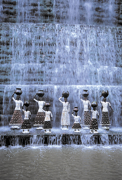 »Hunderte alter Leinensäcke füllte Nek mit Beton, baute Terrassen in Stufen aus Felsbrocken … Verbogene Fahrradrahmen und rostige Rohre formte er zu Skeletten, überzog sie mit Beton, schnitt und schabte Gesichter von Göttinnen und Königinnen hinein. Armreifen reihten sich zu einem Regenbogen lachender Kinder, singender Männer, sich wiegender Frauen. Er modellierte Schakalrudel, Affenhorden, Scharen von Gänsen. Eins zum anderen und immer so fort.« Barb Rosenstock
