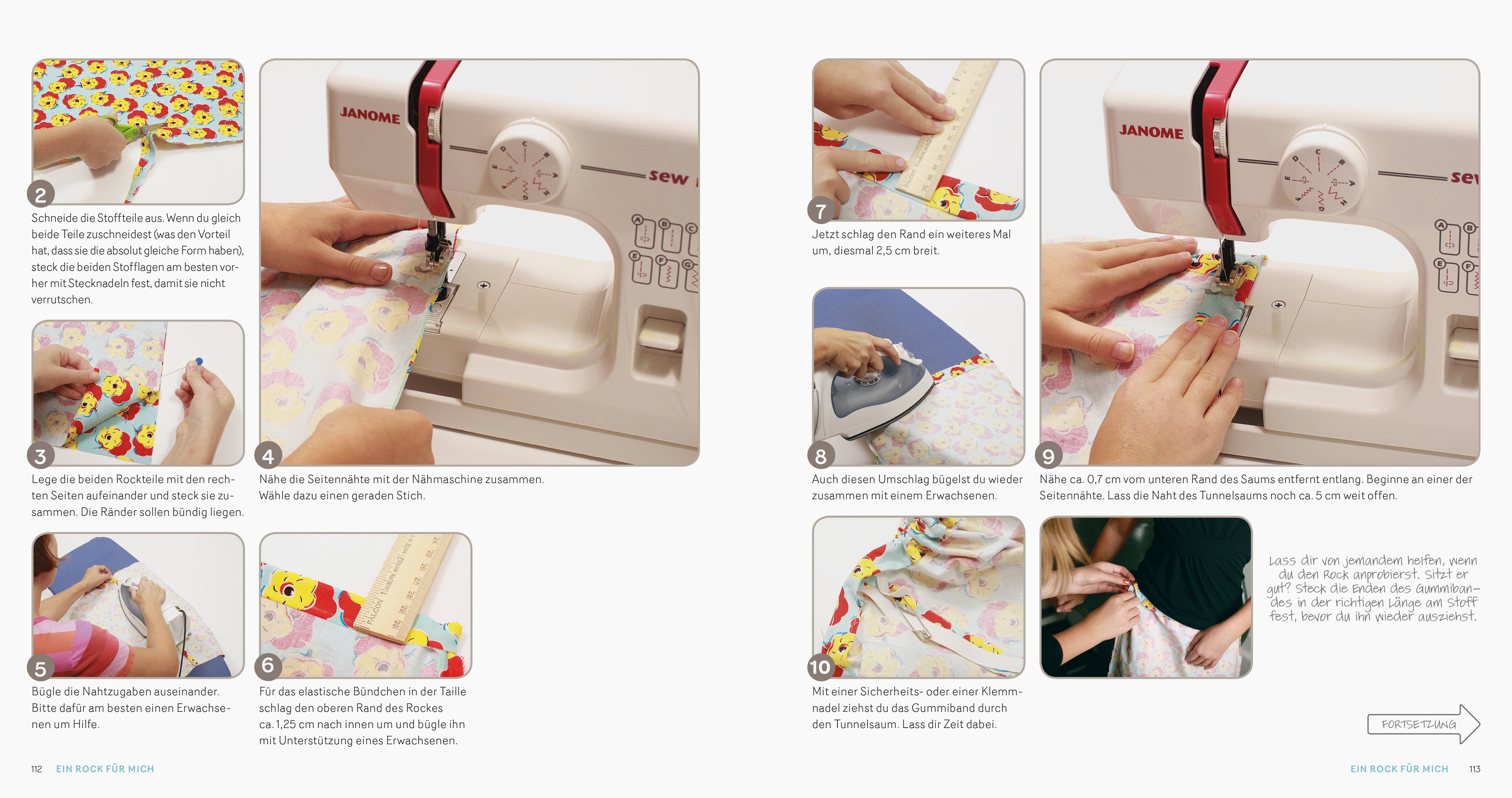 Sie werden sehen: Ihre Kinder für das Nähen zu begeistern, ist mit der »Nähschule« ganz leicht. Bringen Sie ihnen zu Hause, im Kindergarten oder in der Schule spielerisch und mit viel Freude an der Sache bei, wie es funktioniert - mit übersichtlichen Schritt- für-Schritt-Anleitungen, in leicht verständlicher Sprache und an lustigen, zeitgemäßen kleinen Nähprojekten, die von Kindern für Kinder erdacht wurden. Haben Ihre Kinder erst einmal ein paar Basisfertigkeiten erlernt, möchten die meisten von ihnen mit dem Nähen gar nicht mehr aufhören.Zu jedem neuen Projekt finden Sie immer auch einen »Hinweis für Erwachsene«, mit dem wir Sie auf Arbeitsschritte aufmerksam machen, bei denen Ihre Kinder Ihre Hilfe brauchen werden.Die Anleitungen selbst sind sprachlich auf dem Verständnislevel von Fünf- bis Achtjährigen verfasst, die Nähprojekte eignen sich für Kinder von fünf Jahren aufwärts.