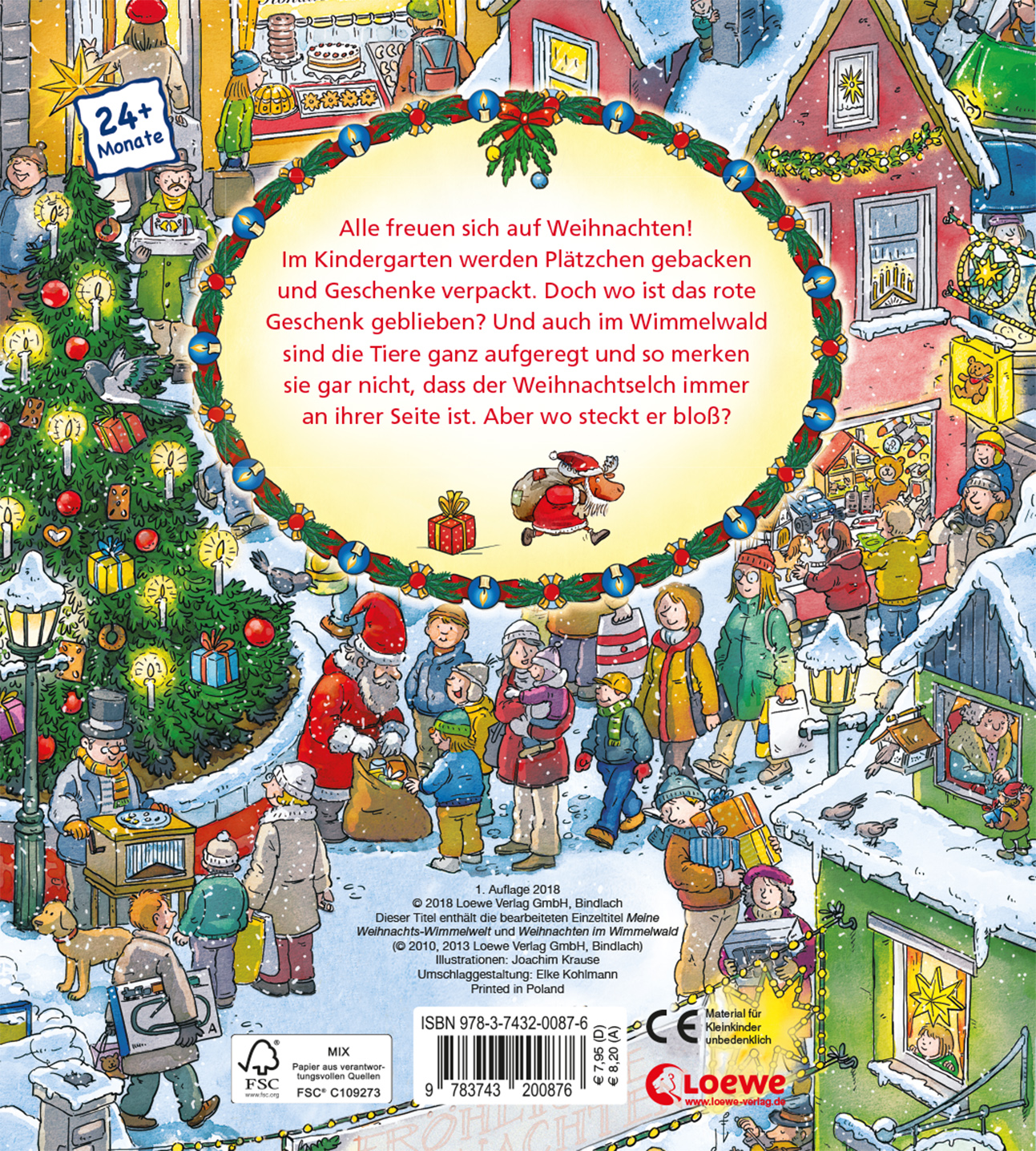 Alle freuen sich auf Weihnachten! Im Kindergarten werden Plätzchen gebacken und zu Hause wird schon alles festlich geschmückt. Auch die Tiere im Wimmelwald sind ganz aufgeregt und so merken sie gar nicht, dass der Weihnachtselch immer an ihrer Seite ist. Aber wo steckt er bloß?