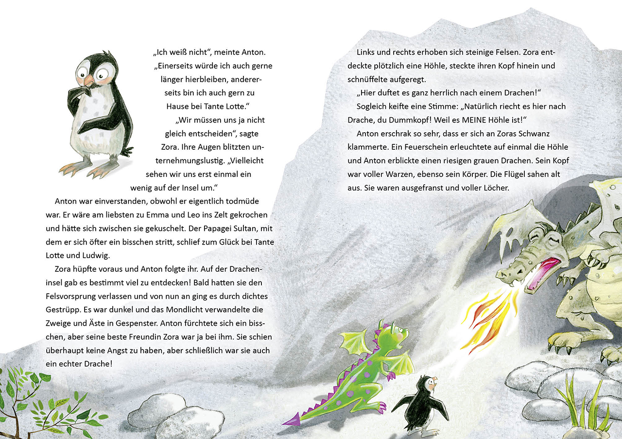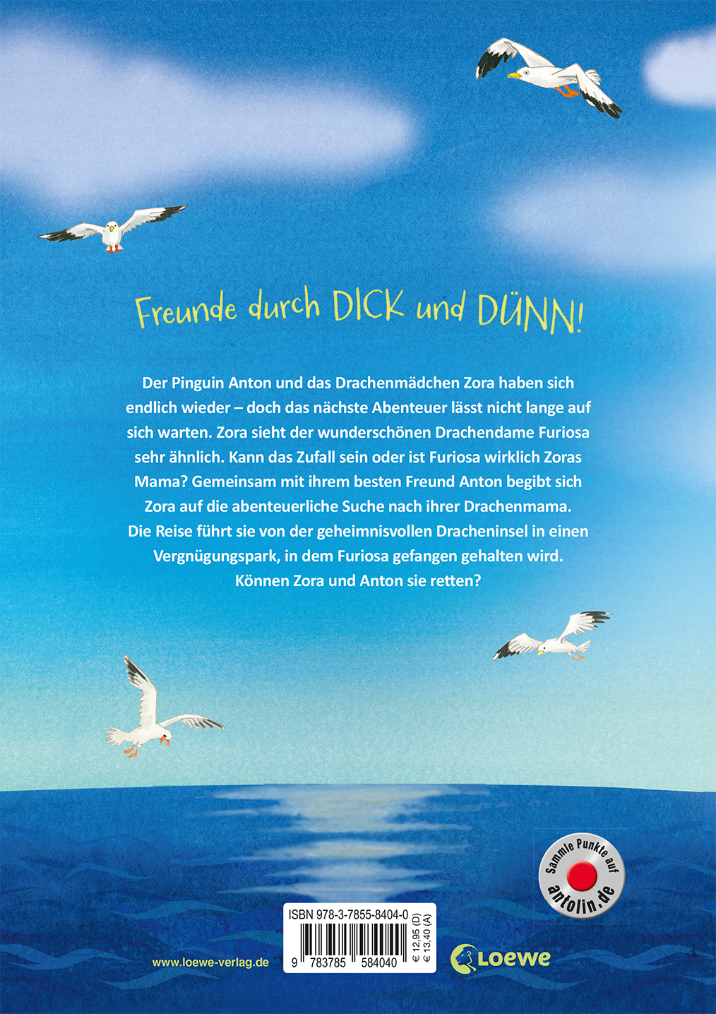 Der Pinguin Anton und das Drachenmädchen Zora haben sich endlich wieder - doch das nächste Abenteuer lässt nicht lange auf sich warten. Zora sieht der wunderschönen Drachendame Furiosa sehr ähnlich. Kann das Zufall sein, oder ist Furiosa wirklich Zoras Mama? Gemeinsam mit ihrem besten Freund Anton begibt sich Zora auf die abenteuerliche Suche nach ihrer Drachenmama. Die Reise führt sie von der geheimnisvollen Dracheninsel in einen Vergnügungspark, in dem Furiosa gefangen gehalten wird. Können Zora und Anton sie retten?